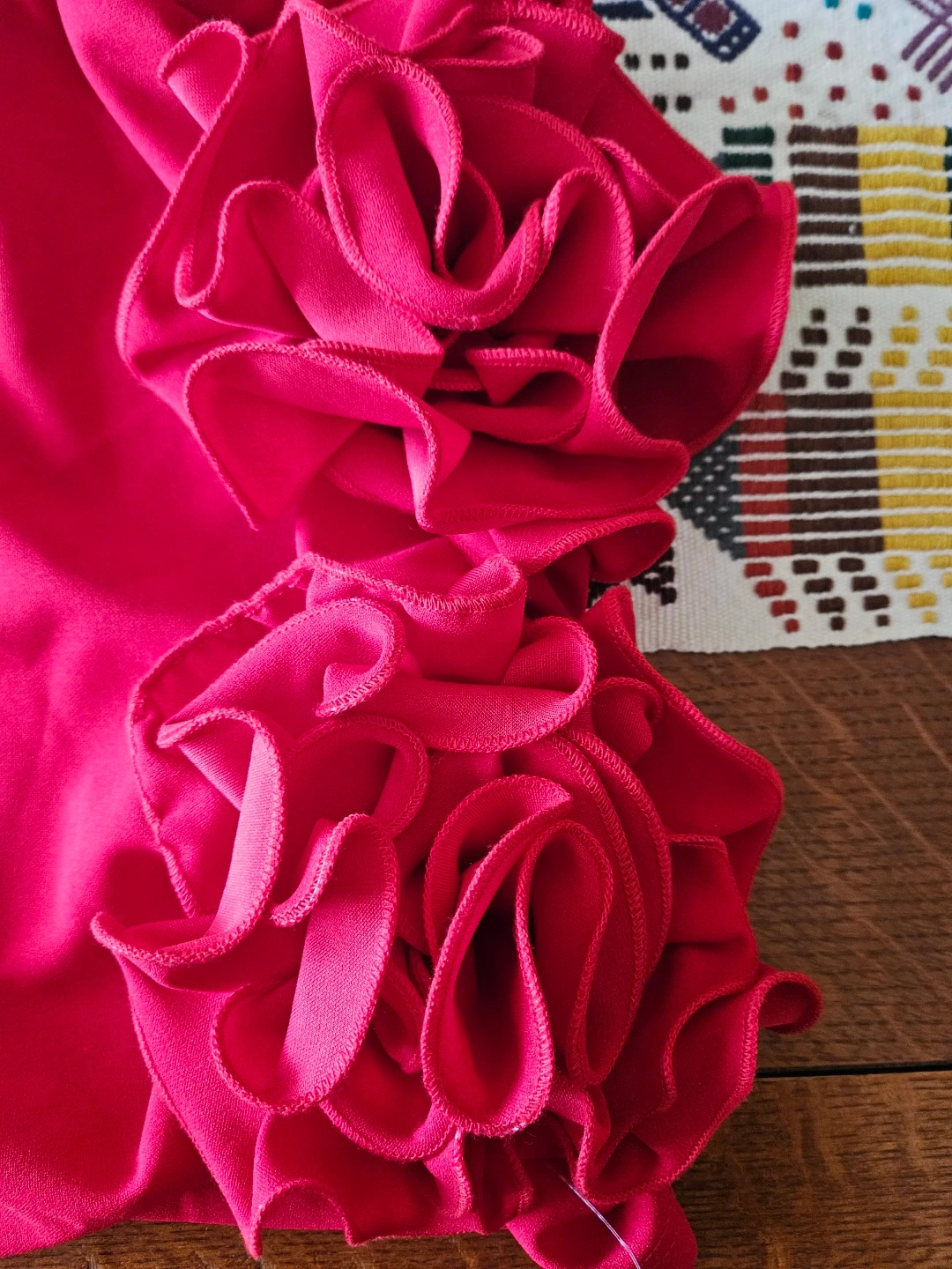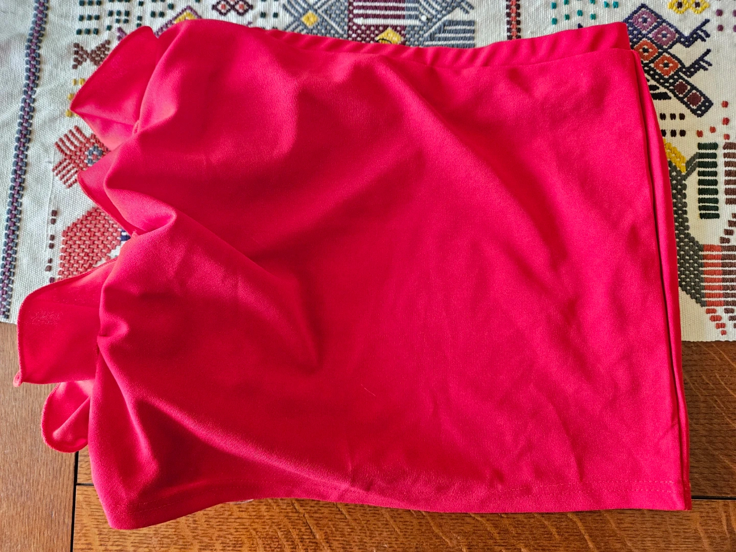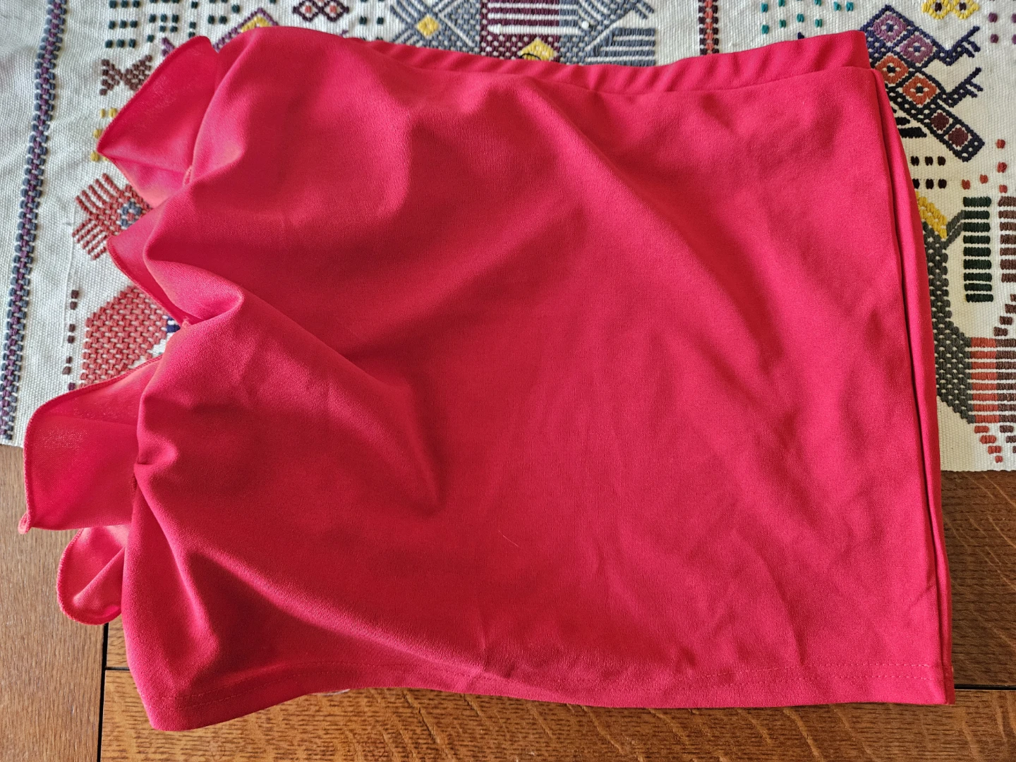 Selling a cute SOLADO red skirt with ruffle details! It's a size XS and made of 100% polyester. The skirt is in great condition and ready for a new owner!