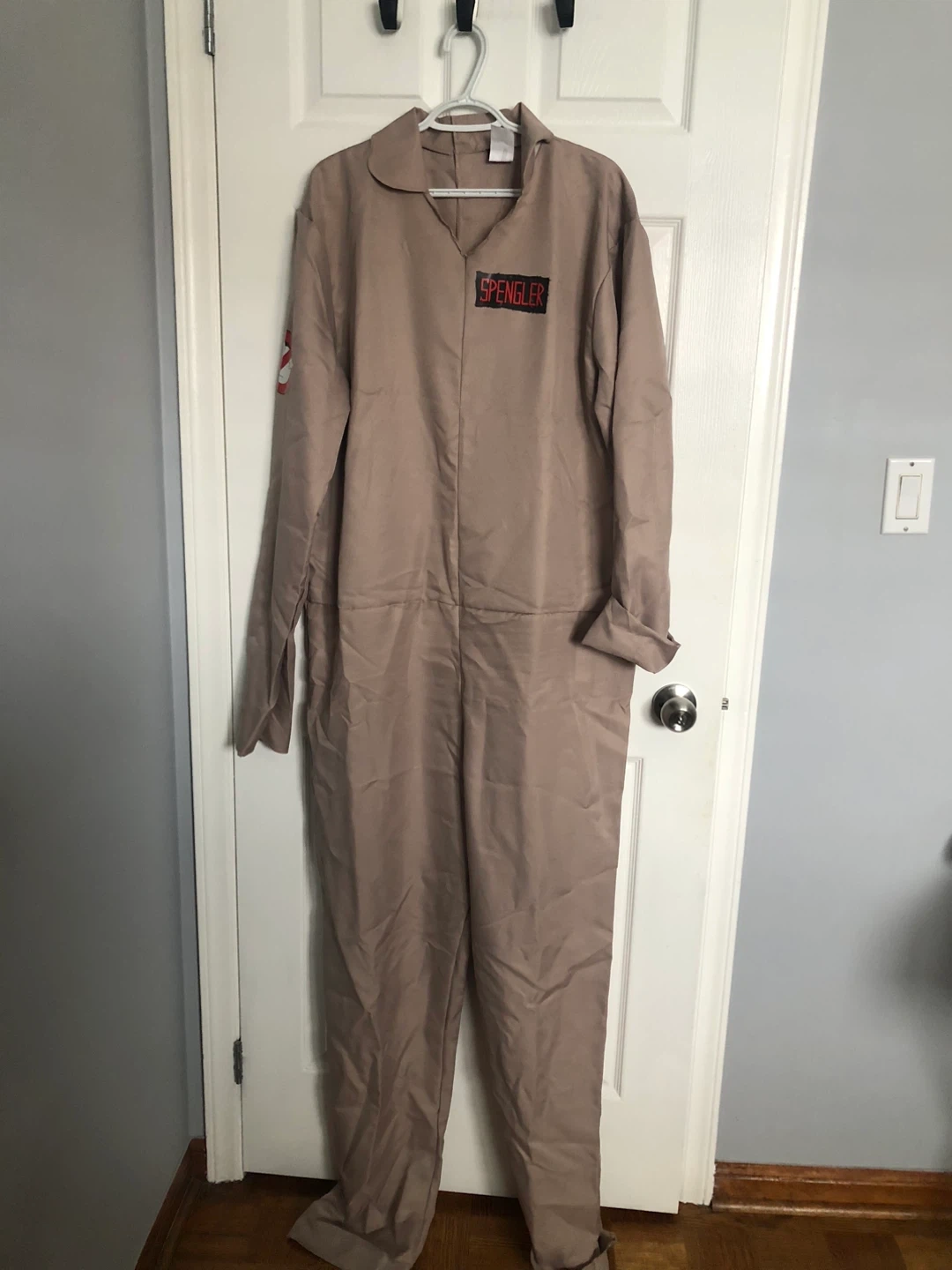 Selling a Ghostbusters costume, specifically the Spengler version! It includes the jumpsuit with the Spengler name tag and the Ghostbusters logo on the sleeve, along with the inflatable proton pack and blaster. Ready for Halloween or your next cosplay event