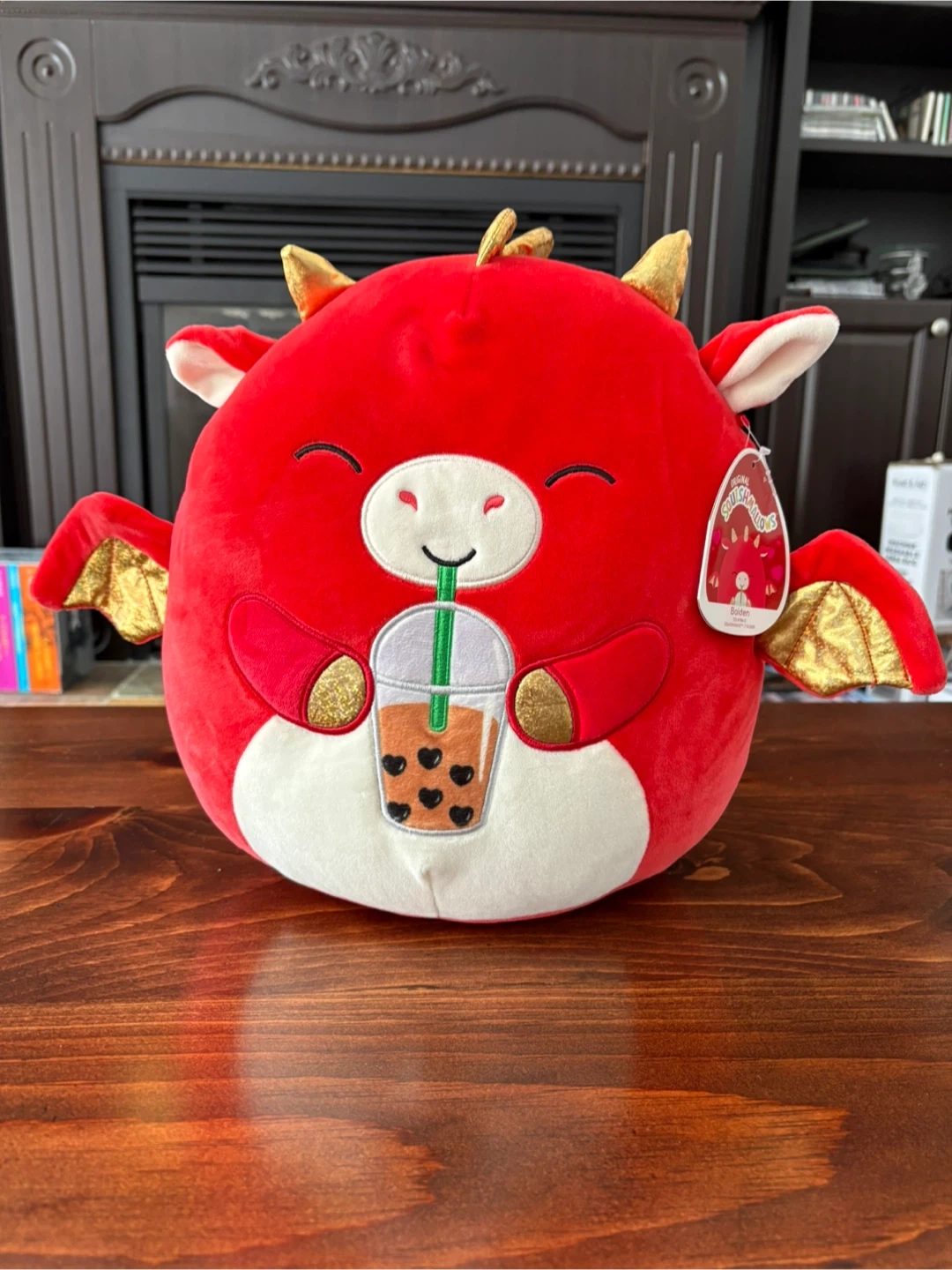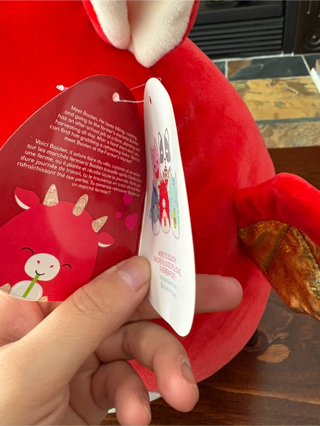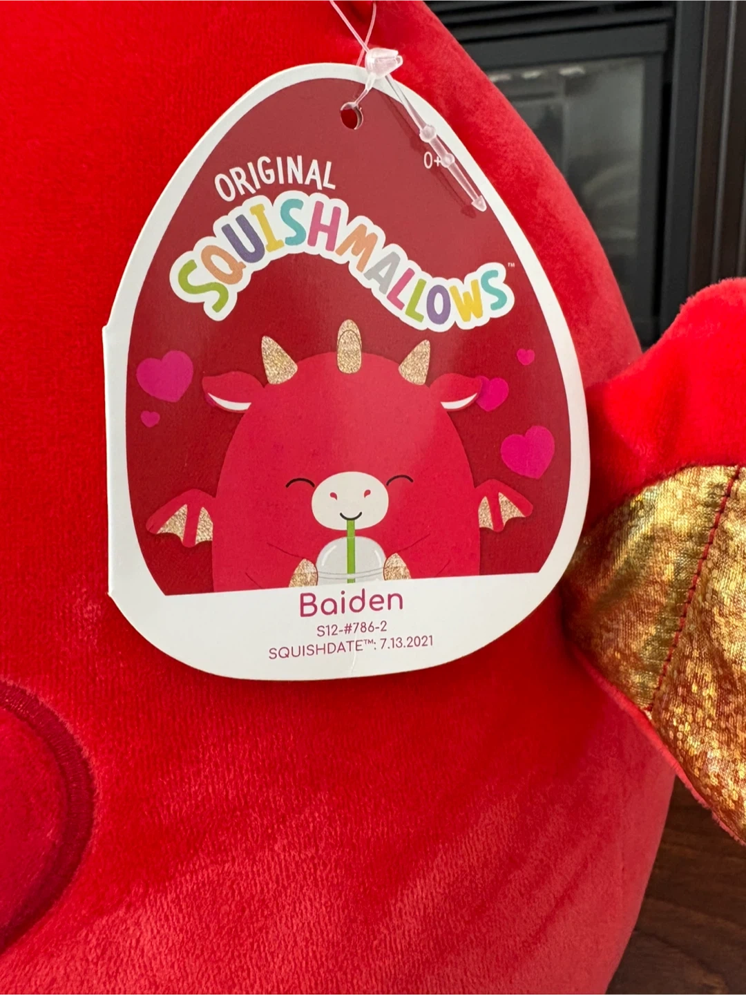 Meet Baiden the Squishmallows dragon! This red and gold plushie is brand new with tags. Baiden is ready for a new friend!