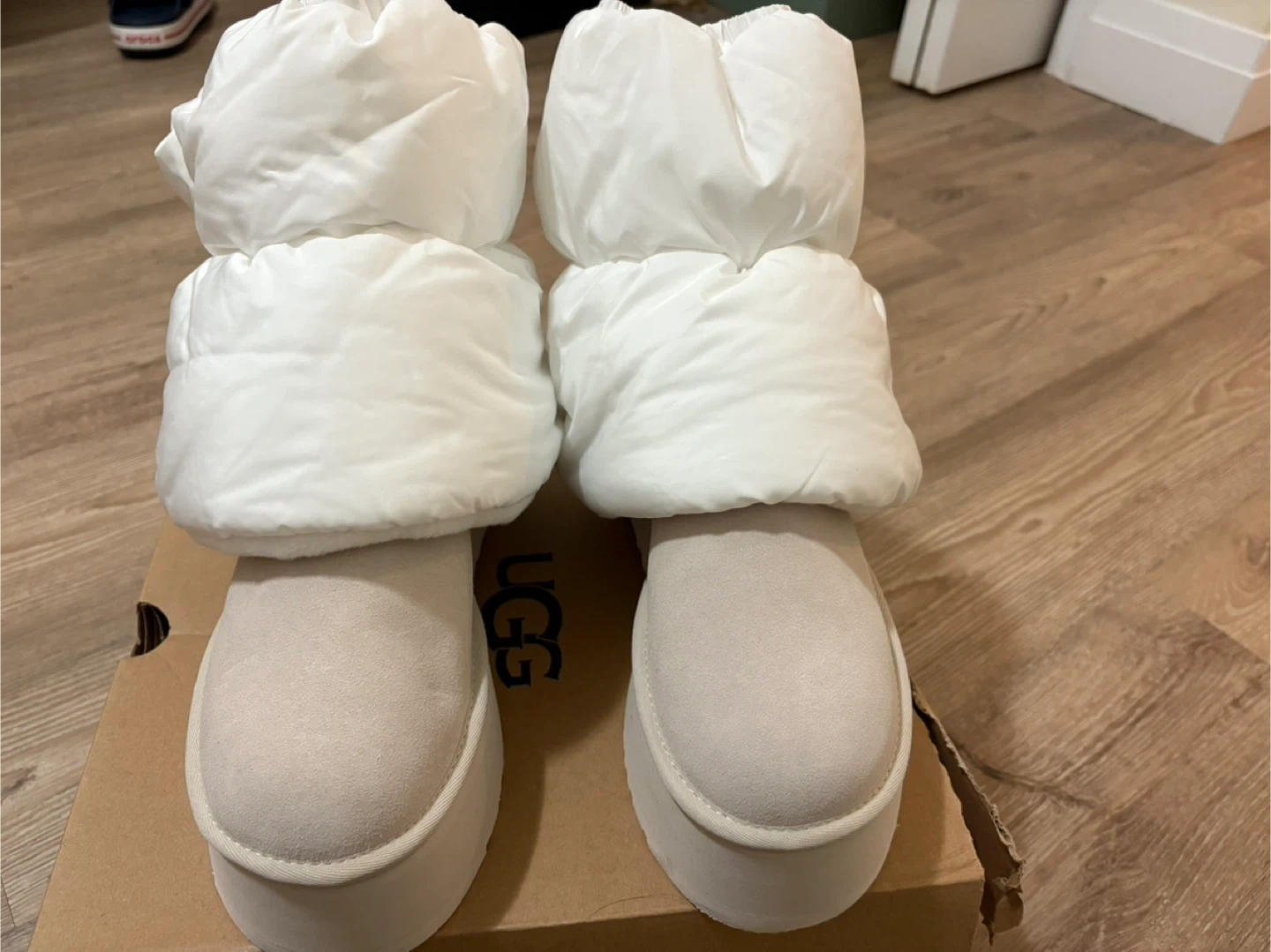 These UGG Tasman Puff platform boots are in great condition ( never been worn) and ready for a new owner! They're a women's size 7 and feature a stylish, puffy design. Perfect for adding a bit of flair to your winter wardrobe.