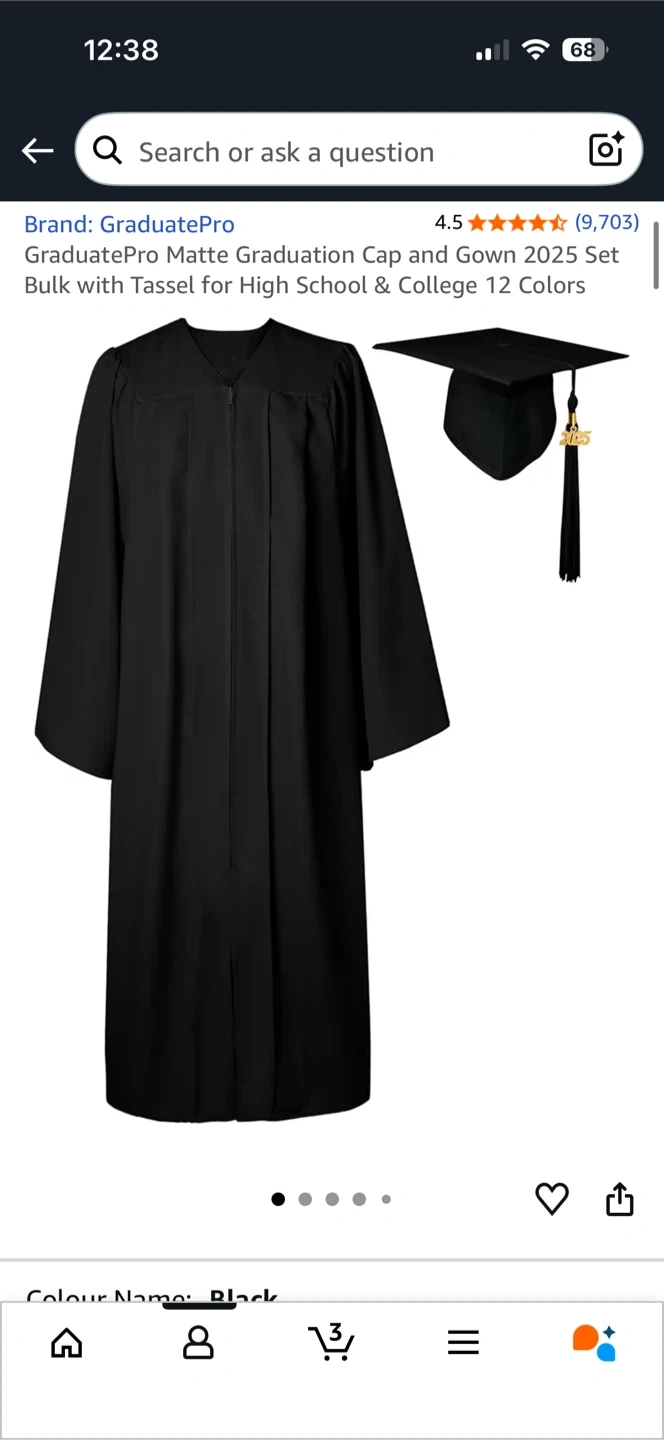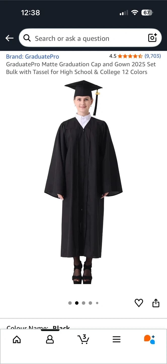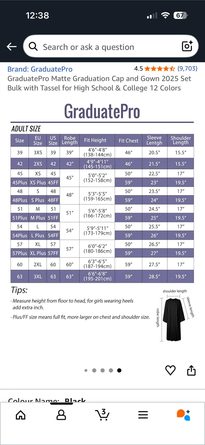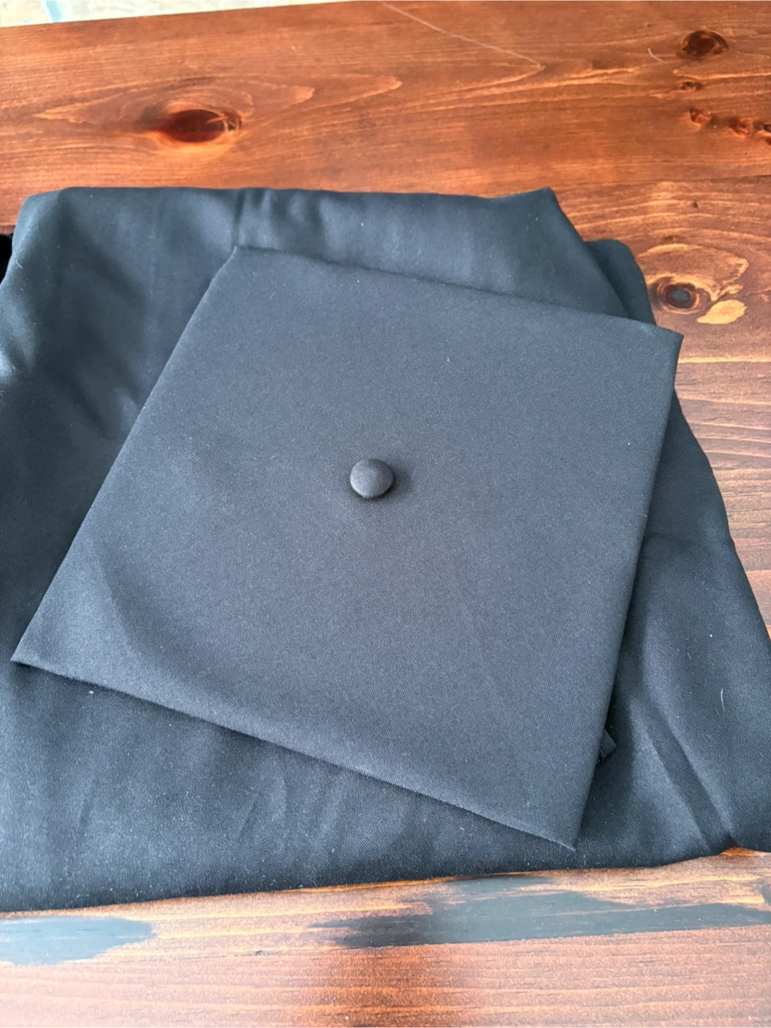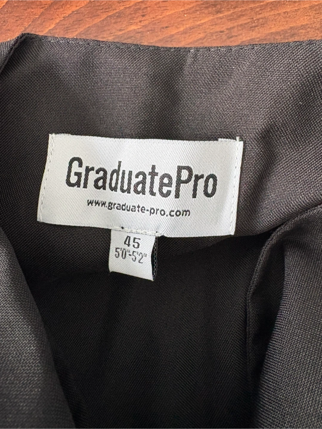 Selling a GraduatePro matte graduation gown. The size is 45, fitting heights between 5'0" and 5'2". See size guide! It comes with the cap and tassel. Retails $35. Good for a DIY grad (which we did) or for a costume.