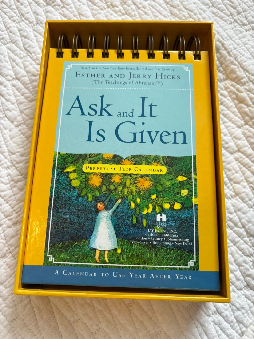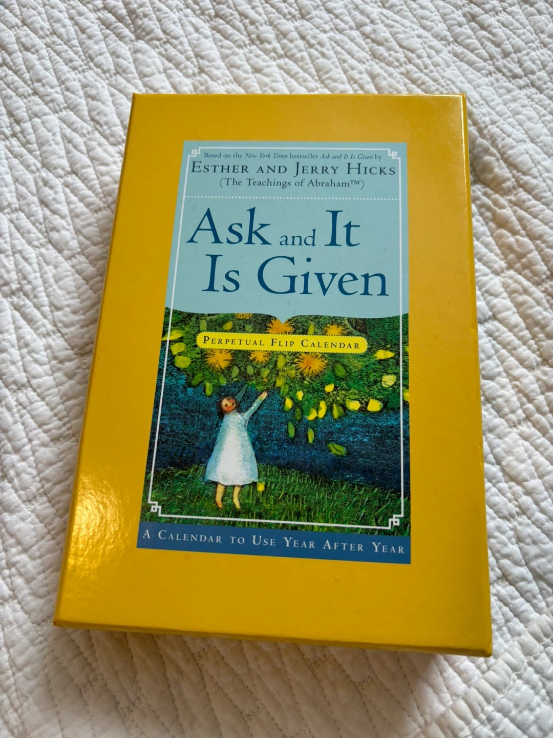 Selling a copy of 'Ask and It Is Given' by Esther and Jerry Hicks! This is a perpetual flip calendar, so you can use it year after year. Comes in its original box! And It is not used.