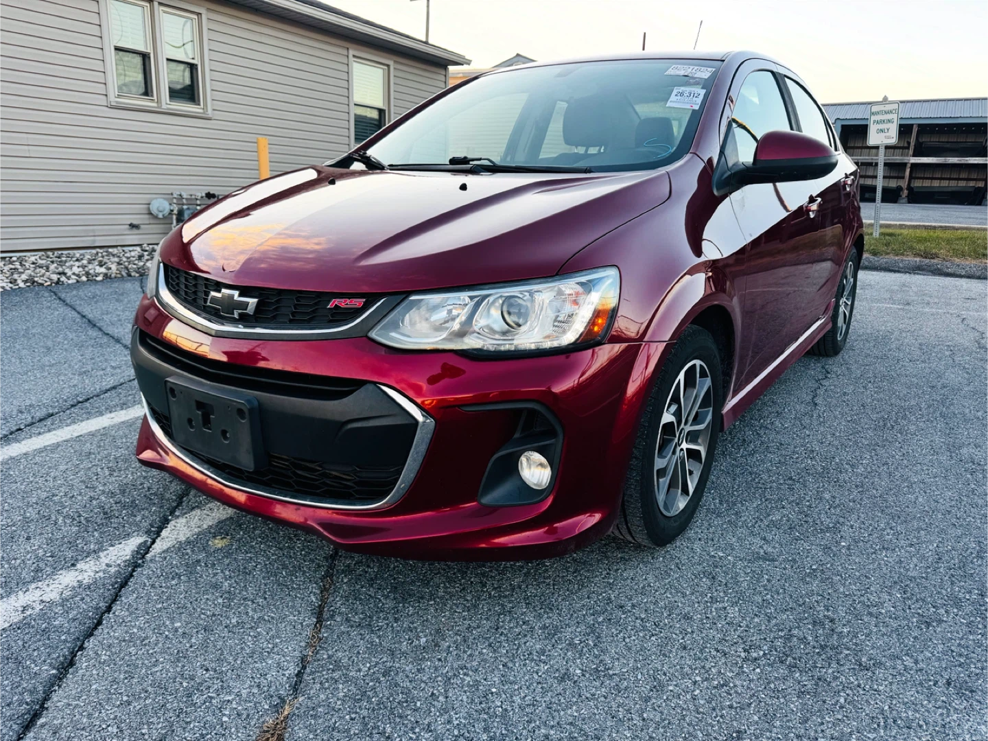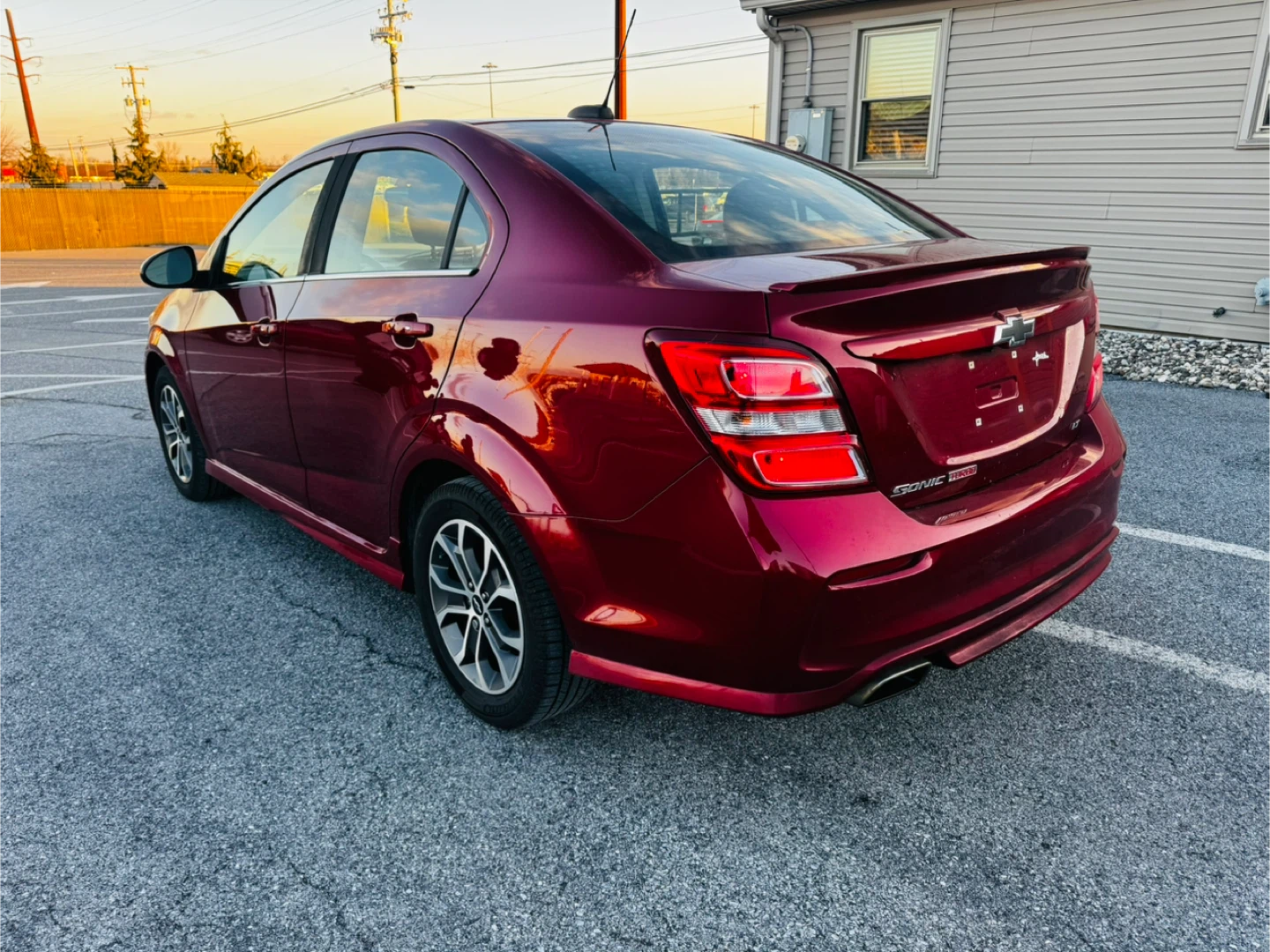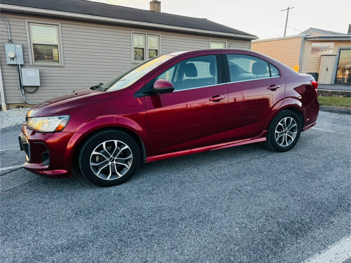 Selling a Chevrolet Sonic sedan in a beautiful burgundy color. It looks like it's in good condition and ready for a new owner!
