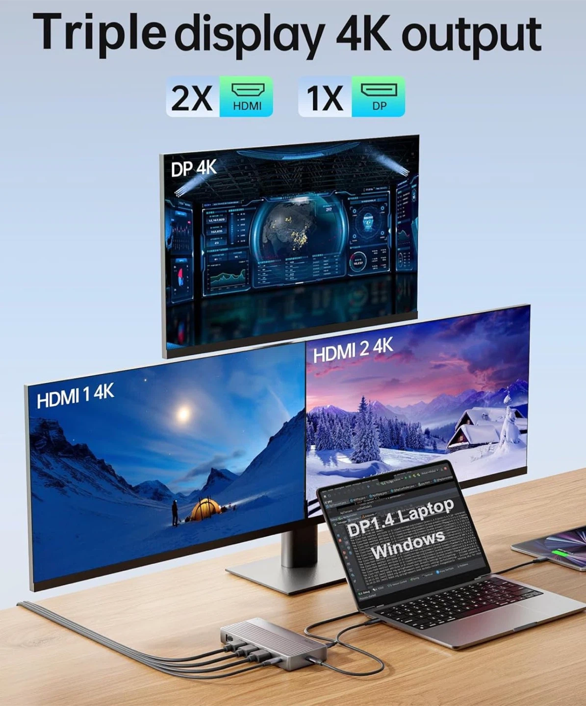 Laptop Docking Station, 11-in-1 USB-C Dock with Dual 4K HDMI, Single 8K DisplayPort, 100W PD, 4 USB Ports, Ethernet, SD Card Reader - Supports Triple 4K Display for Dell/HP/Lenovo Windows Laptops