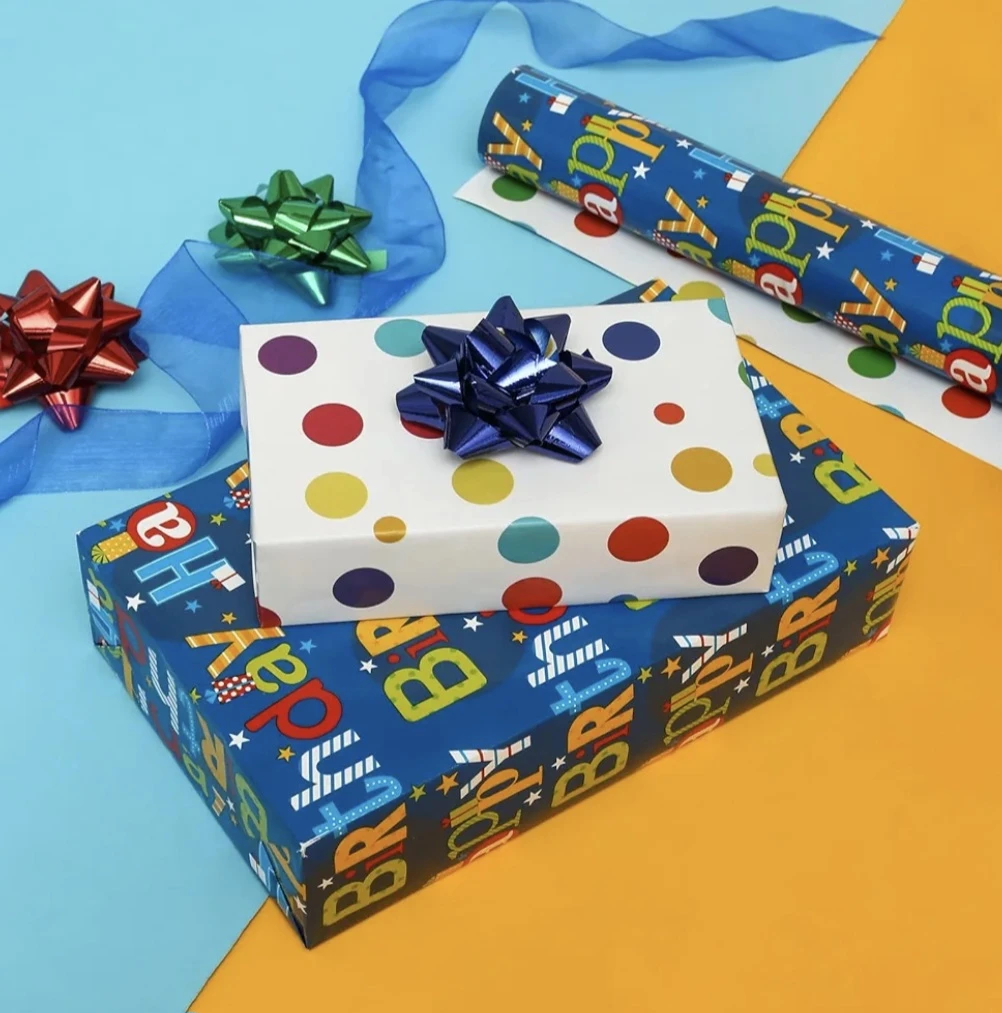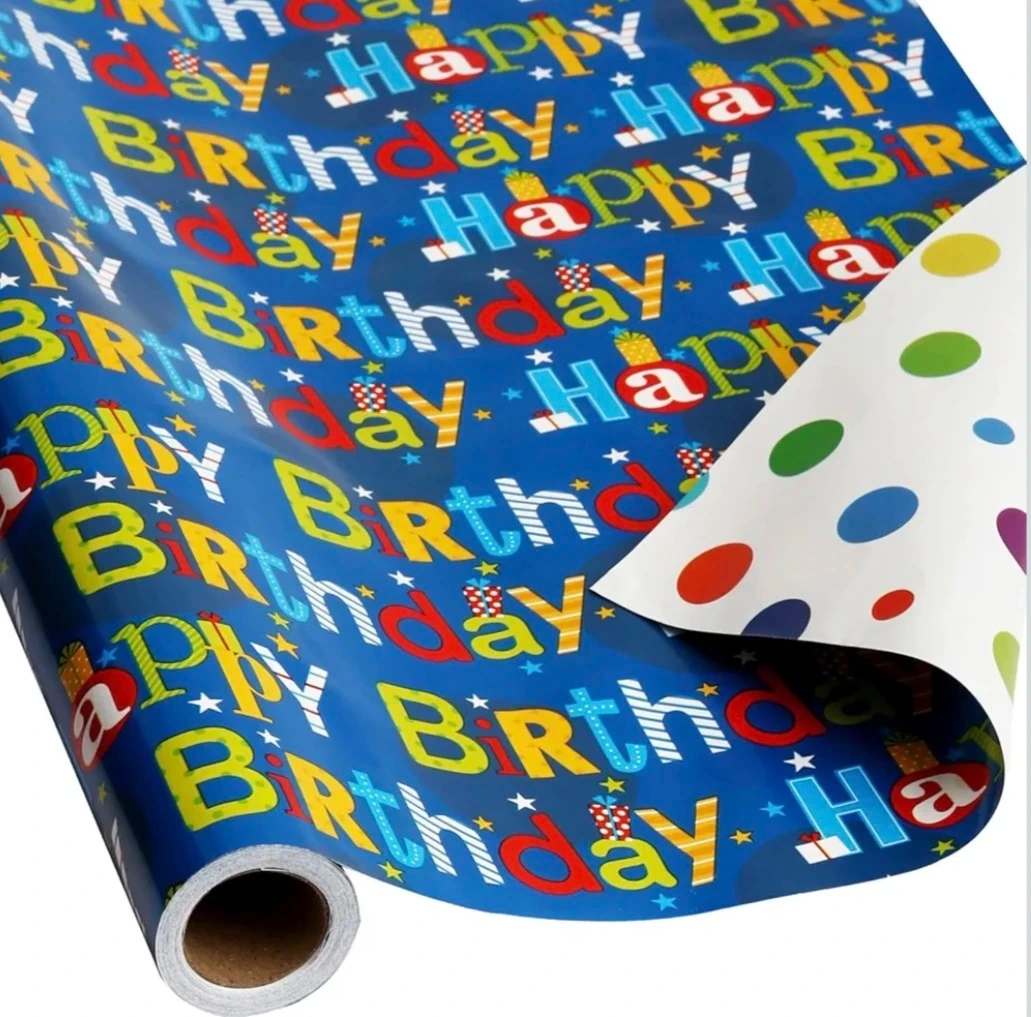 Reversible Happy Birthday Wrapping Paper Roll 17.7"×394"