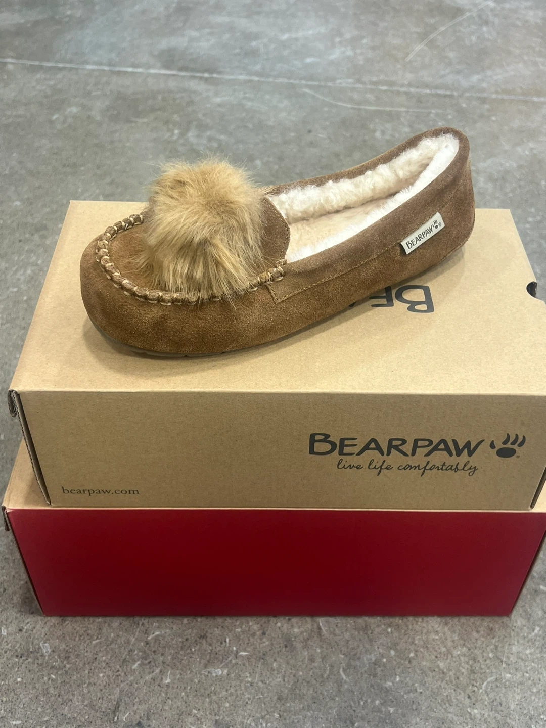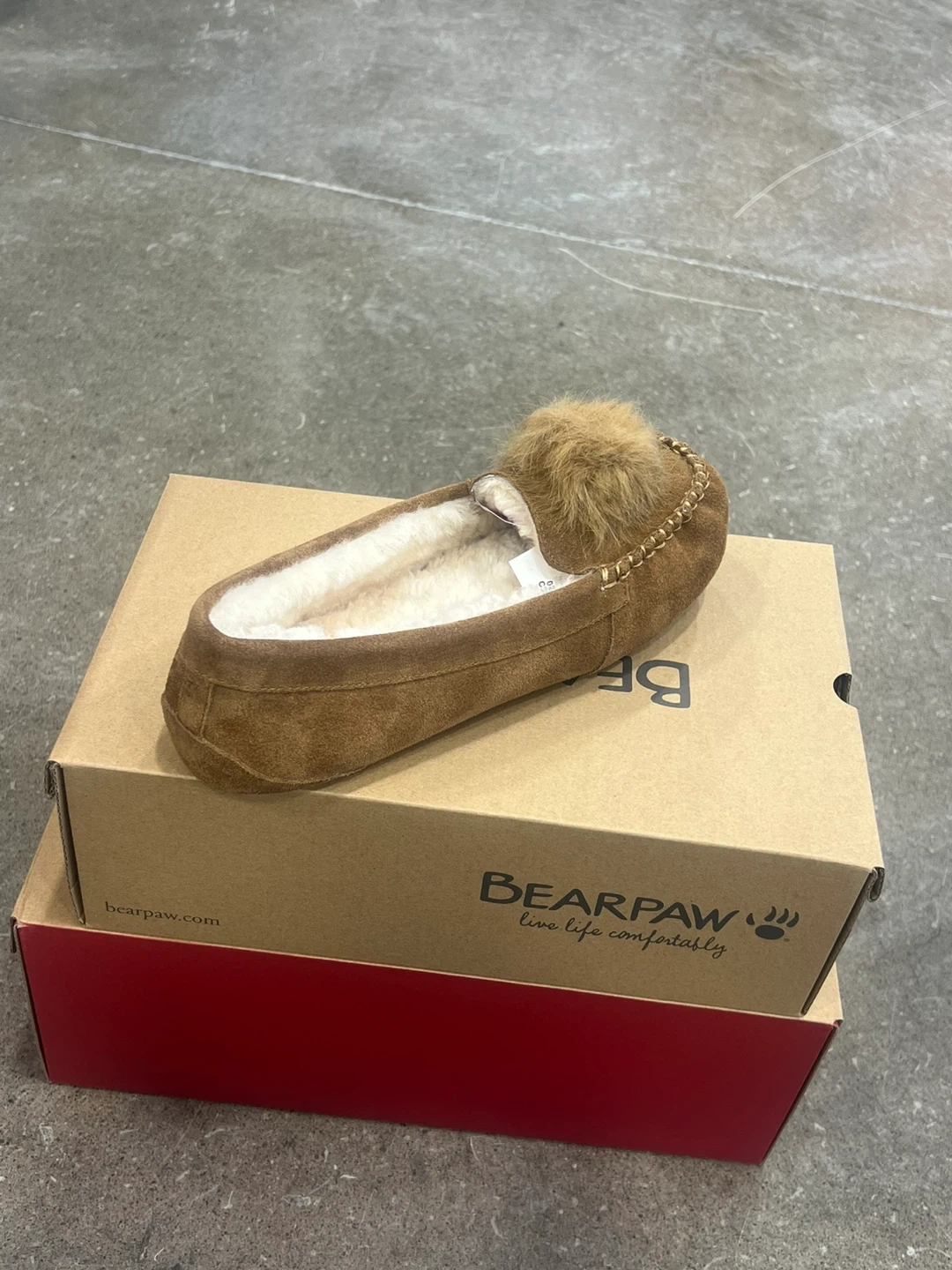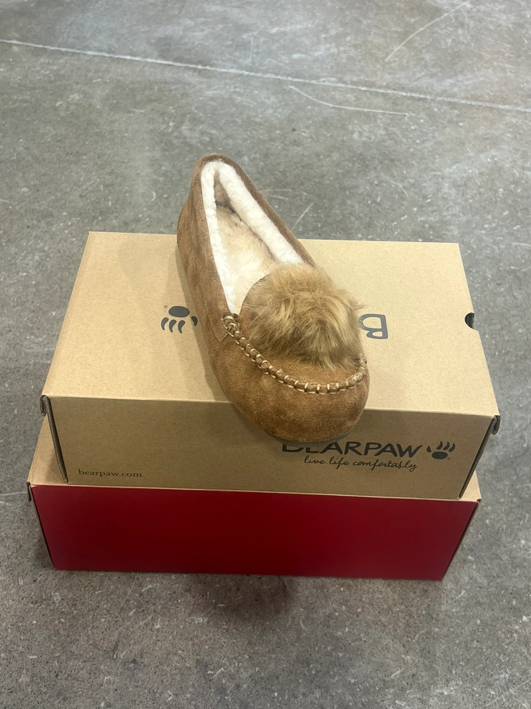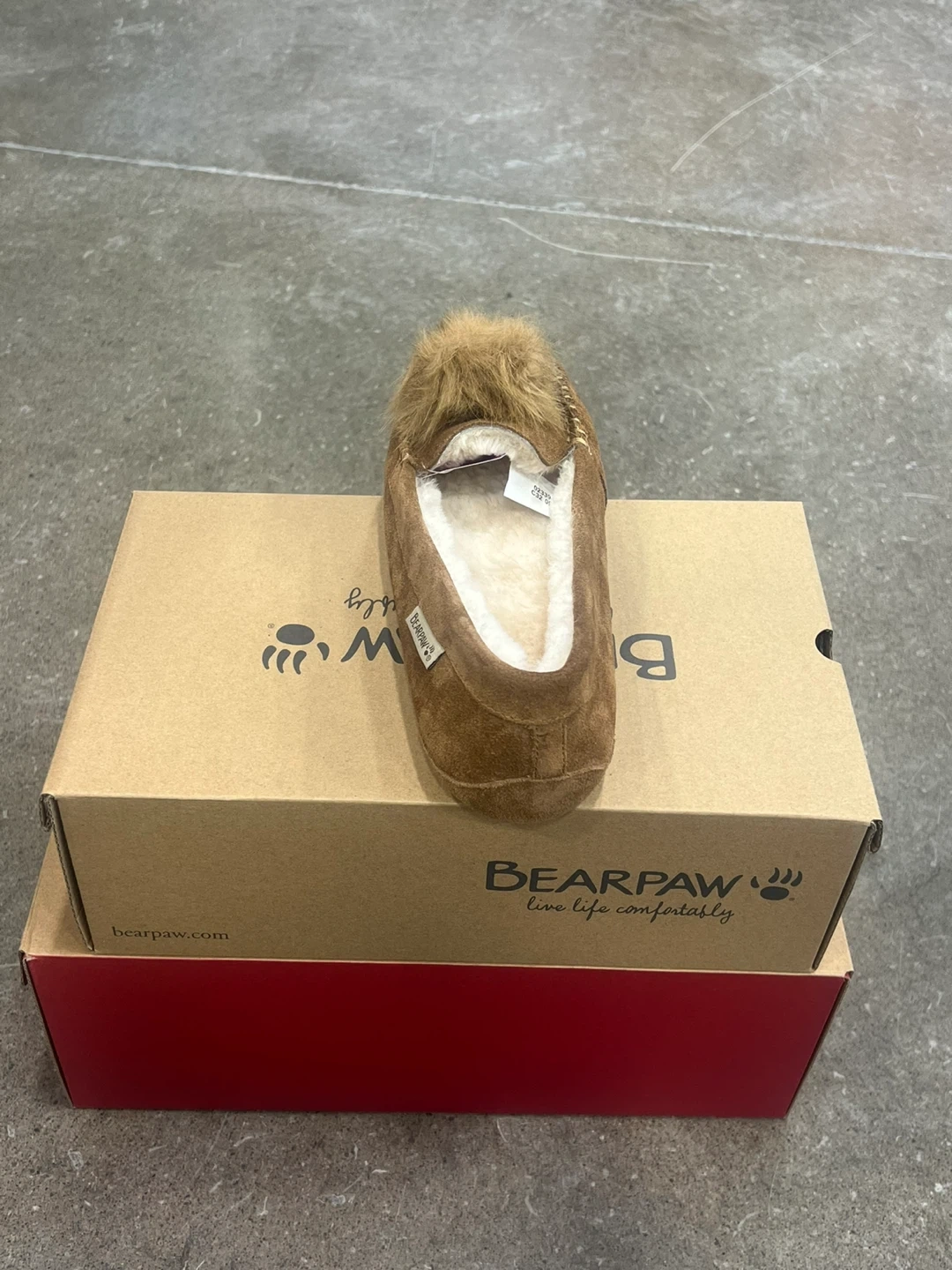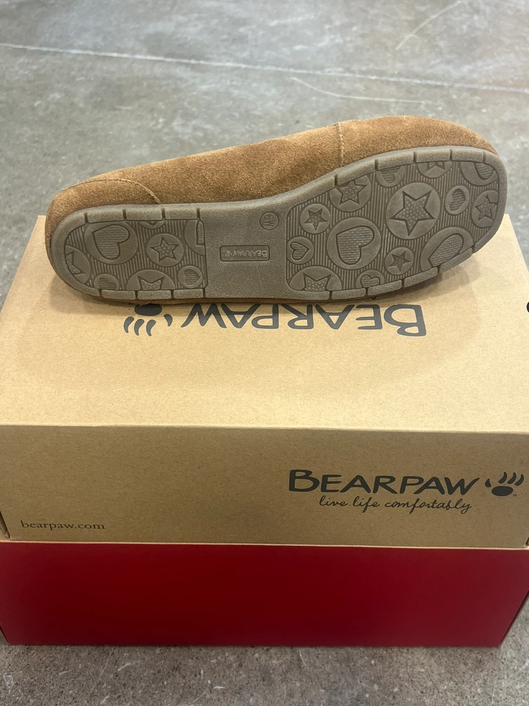 Cozy up with these Bearpaw Women's Moc II slippers! They're a size 8 and come with the original box. Perfect for keeping your feet warm and comfy around the house
