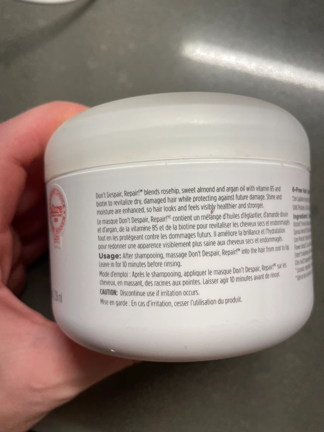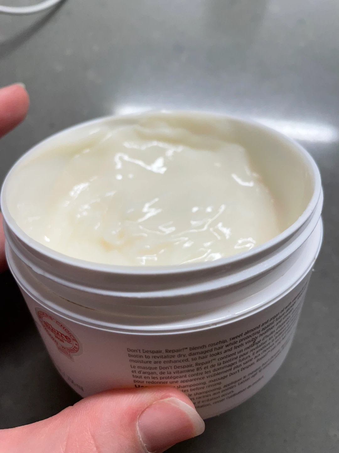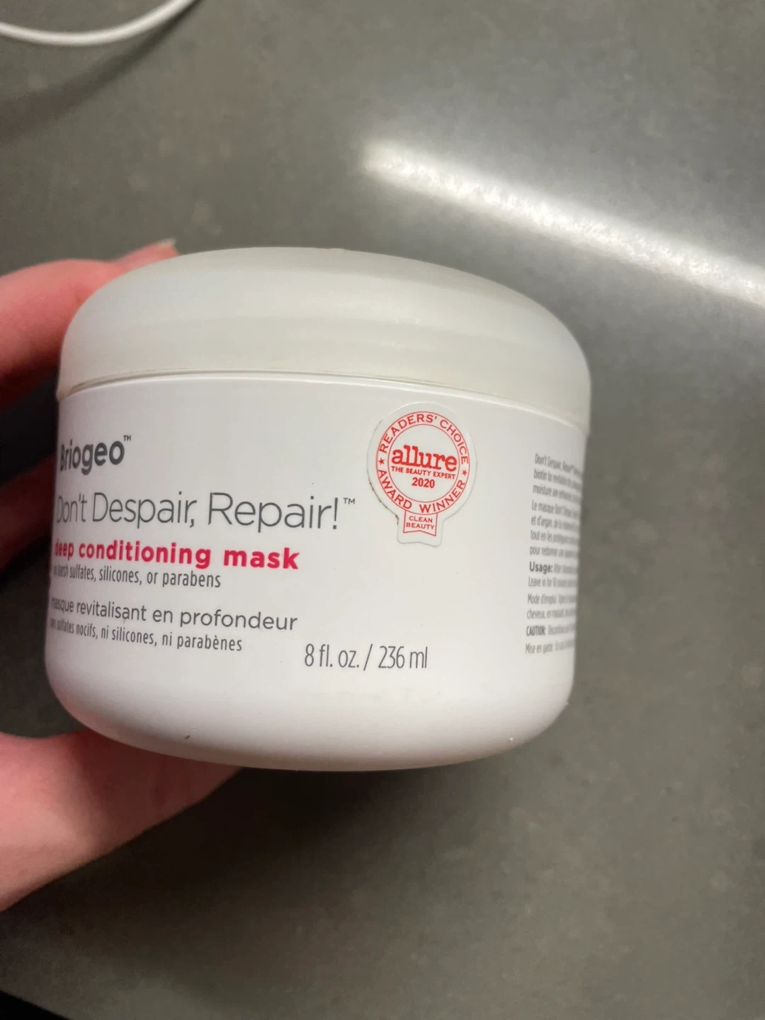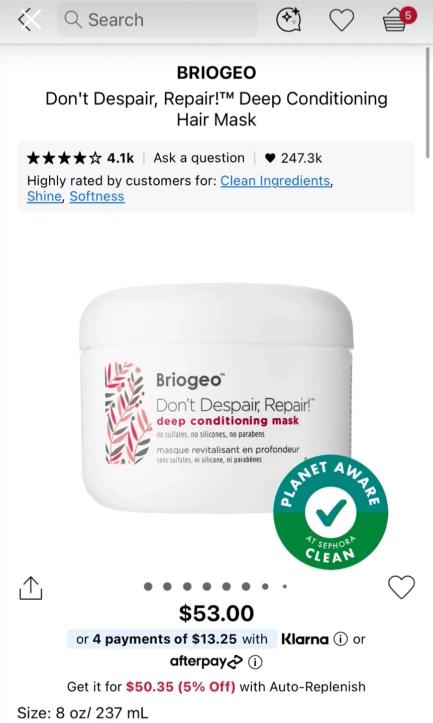 I'm selling a Briogeo Don't Despair, Repair! deep conditioning mask. It's an 8 fl oz / 236 ml container perfect for revitalizing dry, damaged hair. This mask blends rosehip, sweet almond, and argan oil with vitamin B5 and biotin to enhance hair so it looks visibly healthier and stronger
