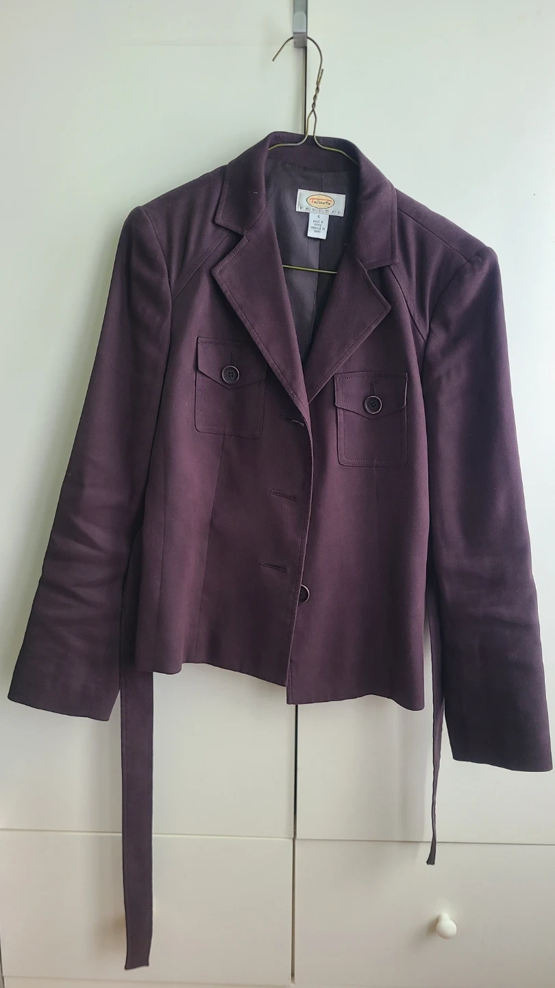 Selling a Talbots blazer in a lovely purple colour. It's made of 100% polyester. Perfect for adding a touch of sophistication to your wardrobe!