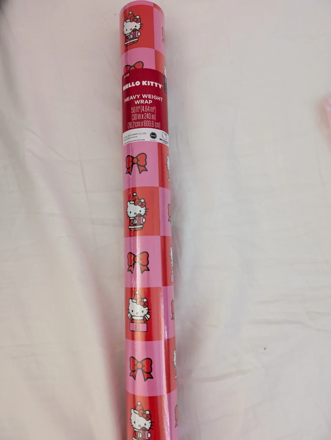 I'm selling a roll of brand new Hello Kitty heavy weight wrapping paper! It's 30 in x 240 in (76.2 cm x 609.6 cm). Originally retailed for $9.99