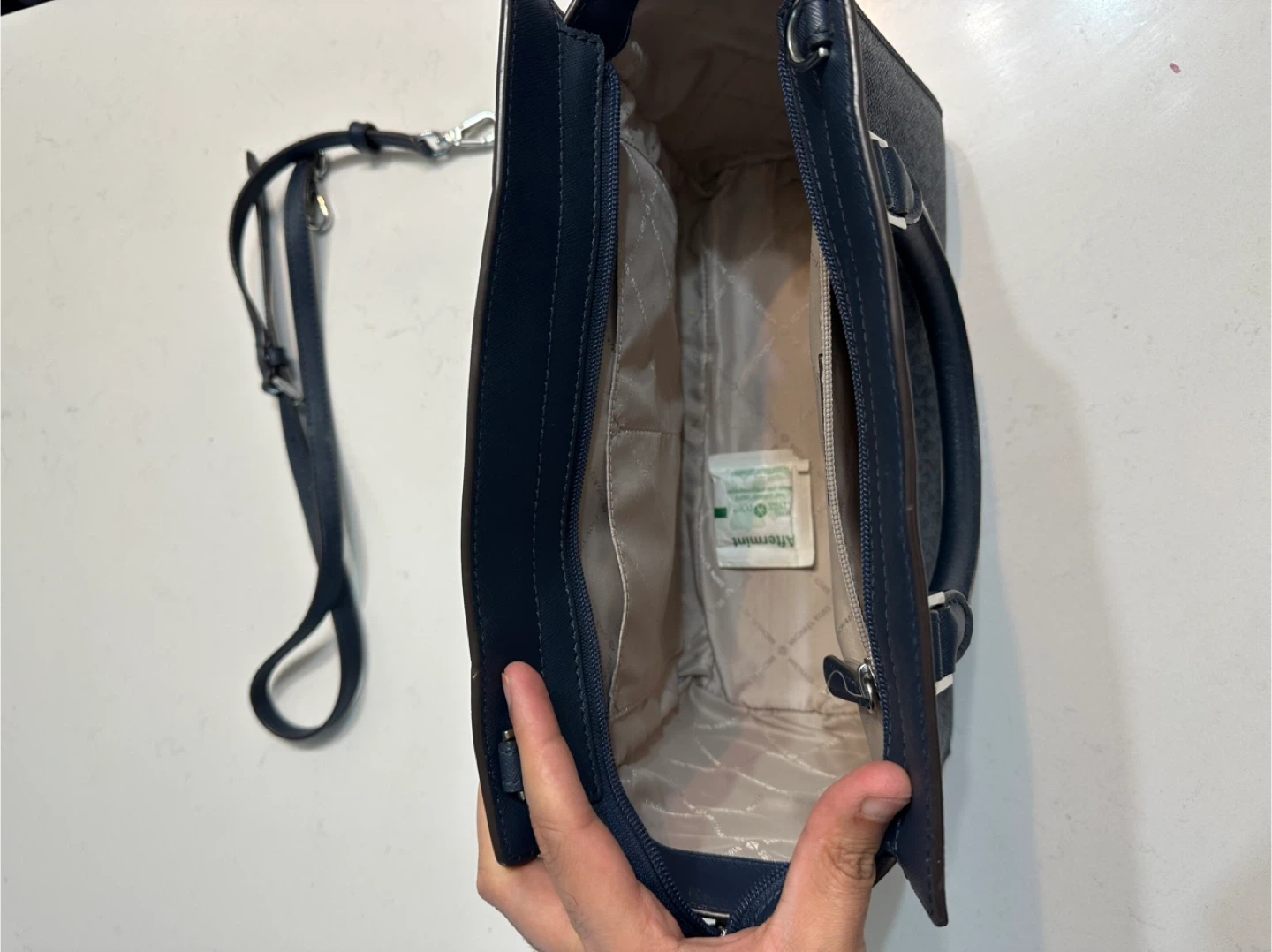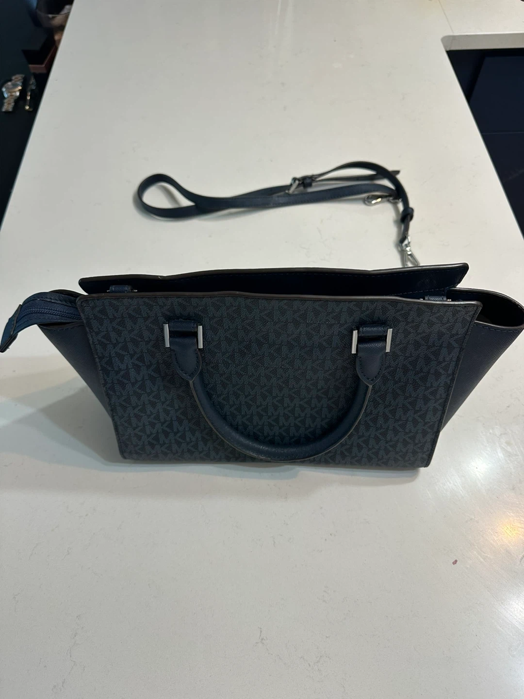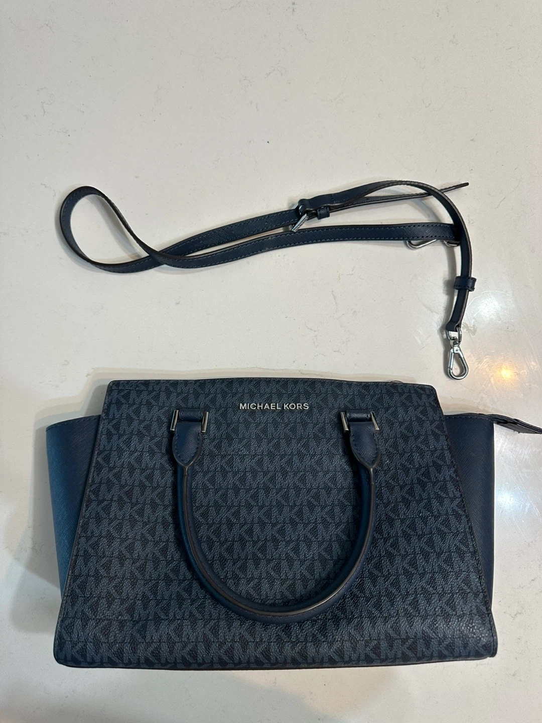 Buy & SellMichael Kors Navy Satchel BagMichael Kors Navy Satchel Bag$135This is a Michael Kors satchel bag in navy. It comes with a detachable strap. It's in great condition and ready for a new owner!ConditionNewBrandMichael KorsWHERE TO MEET381 Front Street West, Toronto M5V3R8View MapSELLERverifiedManikEntertainment District23417 reviews0 chats·0 favorites·4 viewsSEND CHAT TO SELLERHi Manik! I’m interested in your listing.Hi Manik! I’m interested in your listing.Get the Karrot app to chatSign In to chat