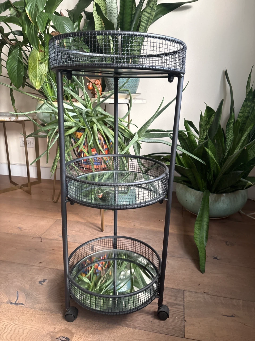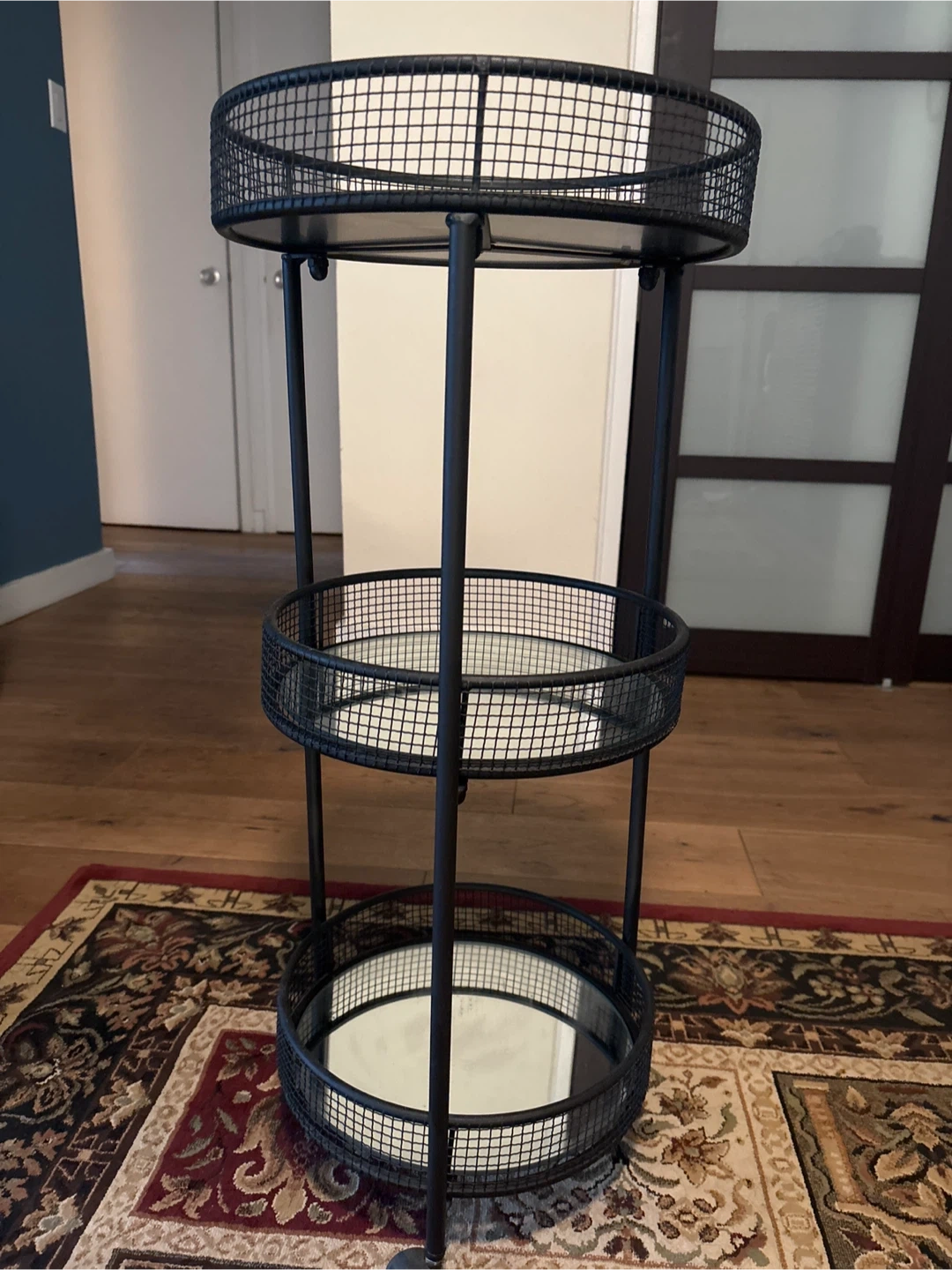 Selling a stylish round 3-tier rolling bar cart! It's perfect for adding a touch of elegance to your home. The black finish gives it a modern look that complements any decor. It's in great condition and ready to use