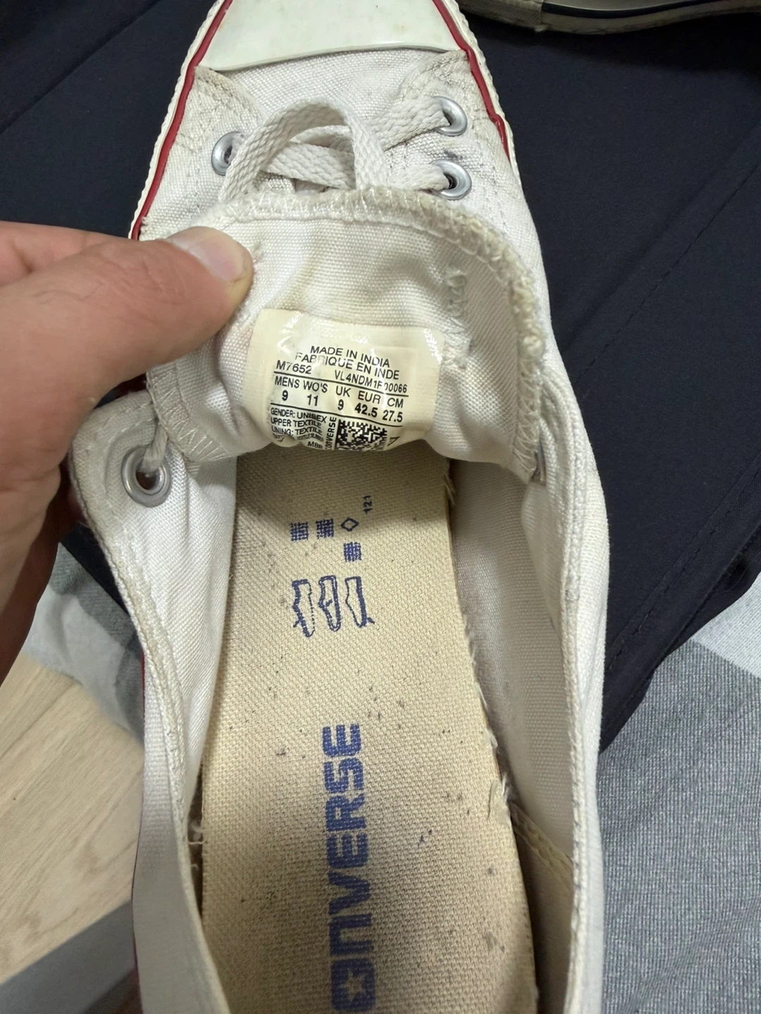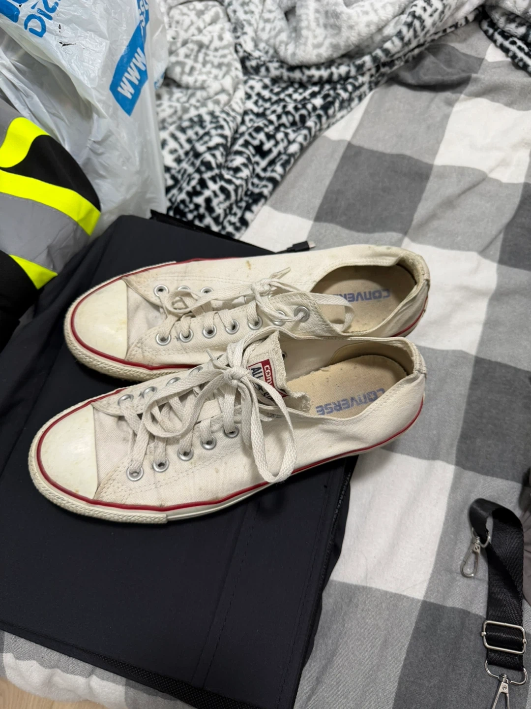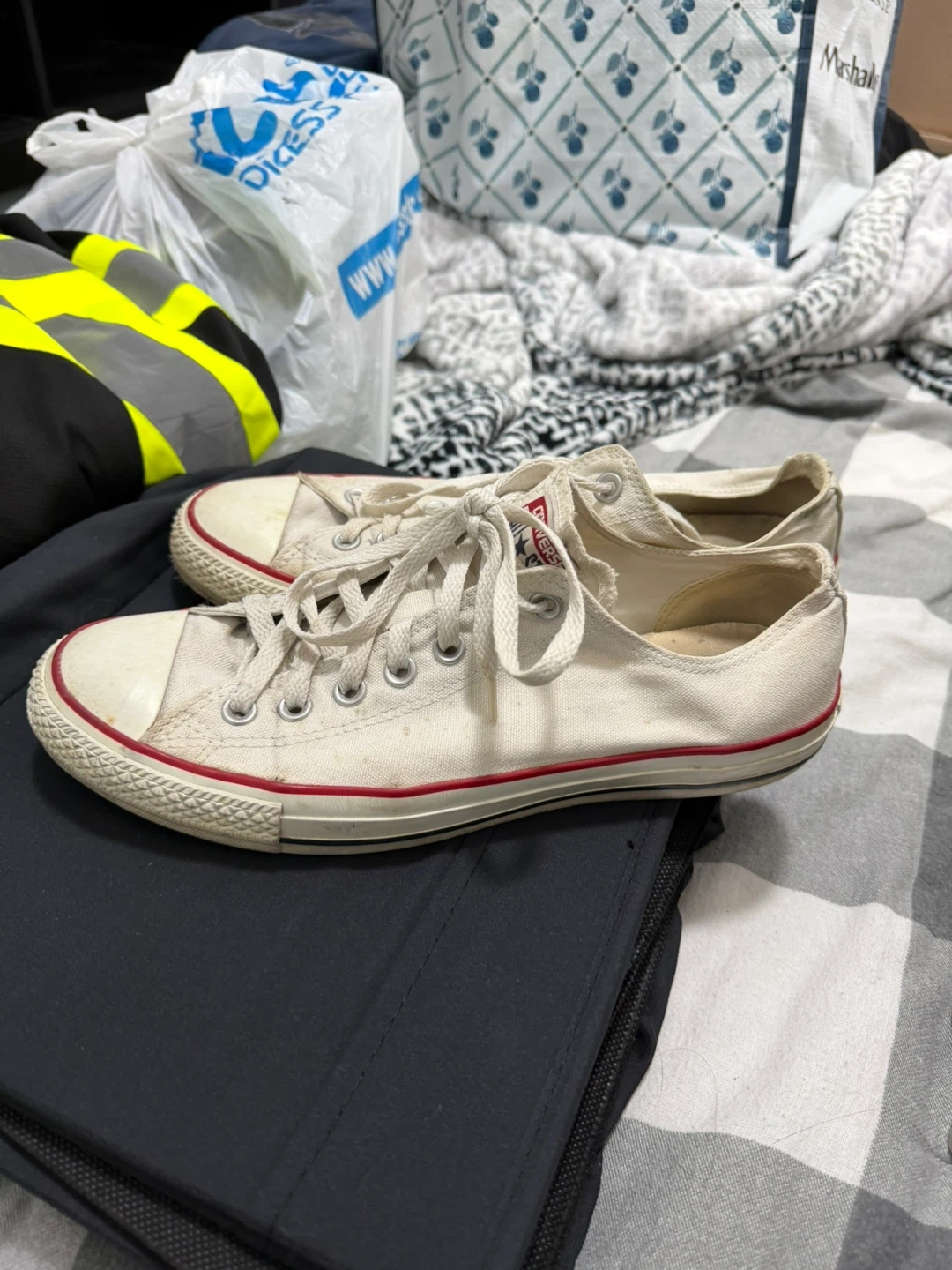 Selling a pair of Converse All Star sneakers in size 11. They show some signs of wear, but still have lots of life left! Perfect for casual wear or a retro look. With a wash 🧽 they will look like new!
