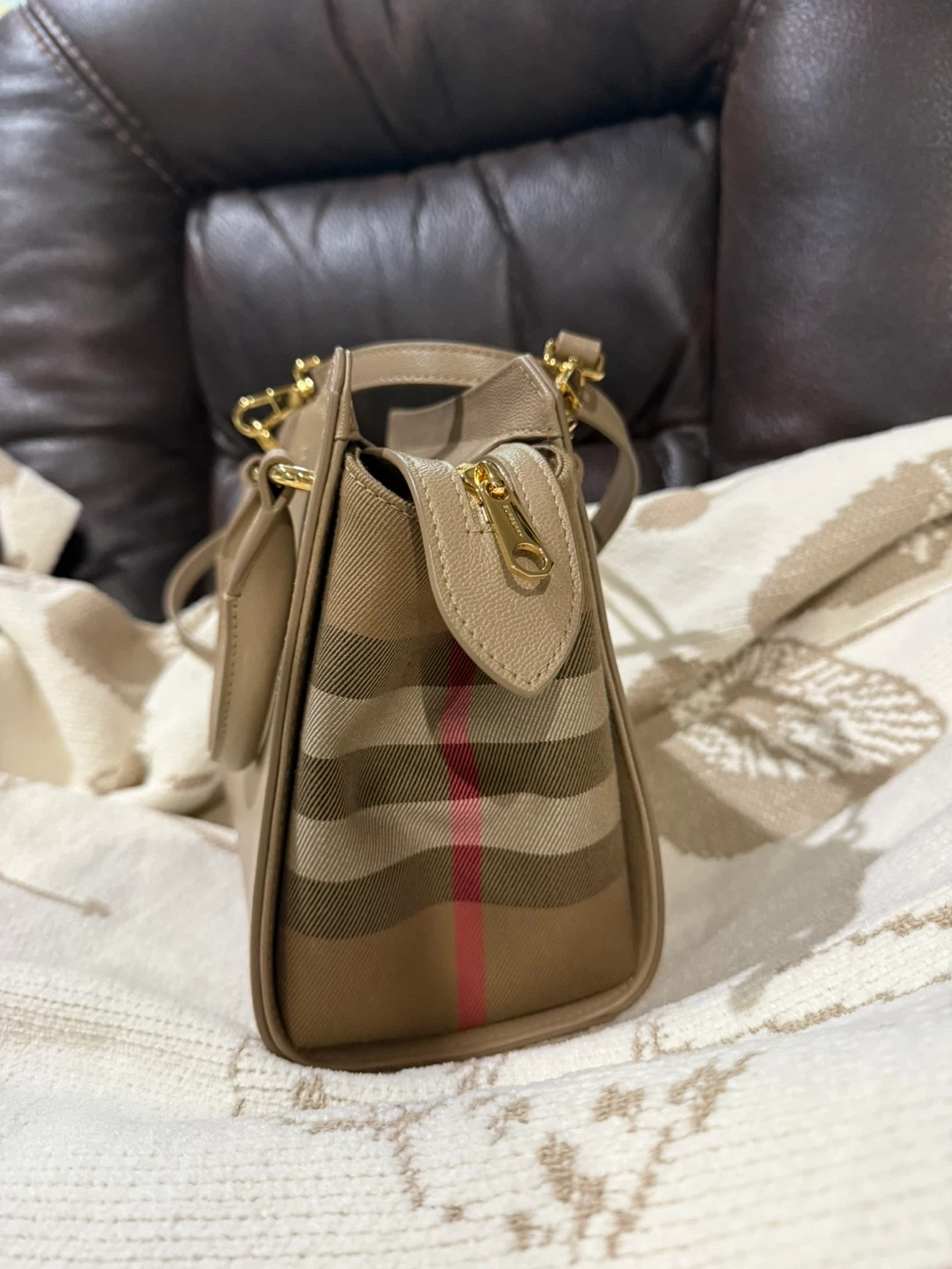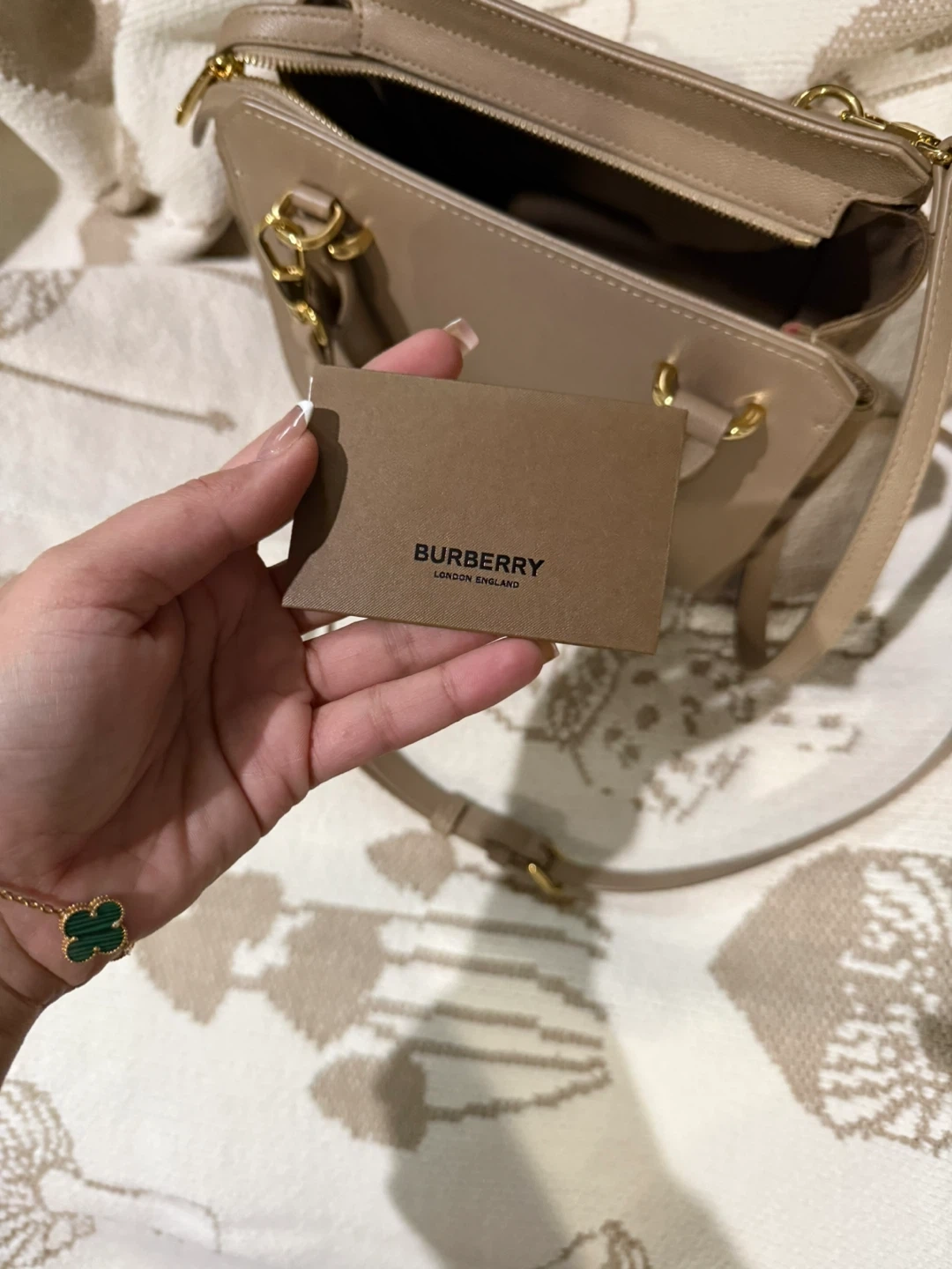 Selling a Burberry Mini Banner bag in beige. It's in great condition and comes with its original dust bag. The bag features gold-tone hardware and a detachable shoulder strap. Perfect for everyday use! Used once for a dinner party!