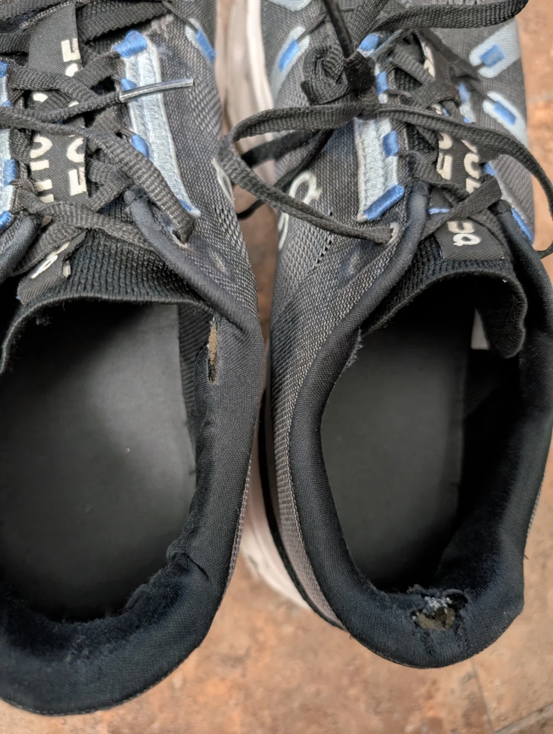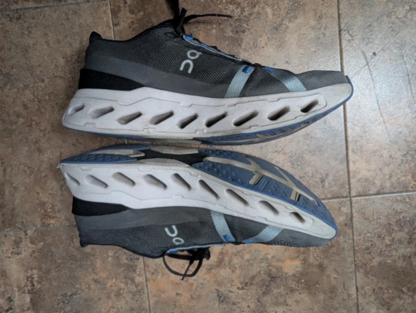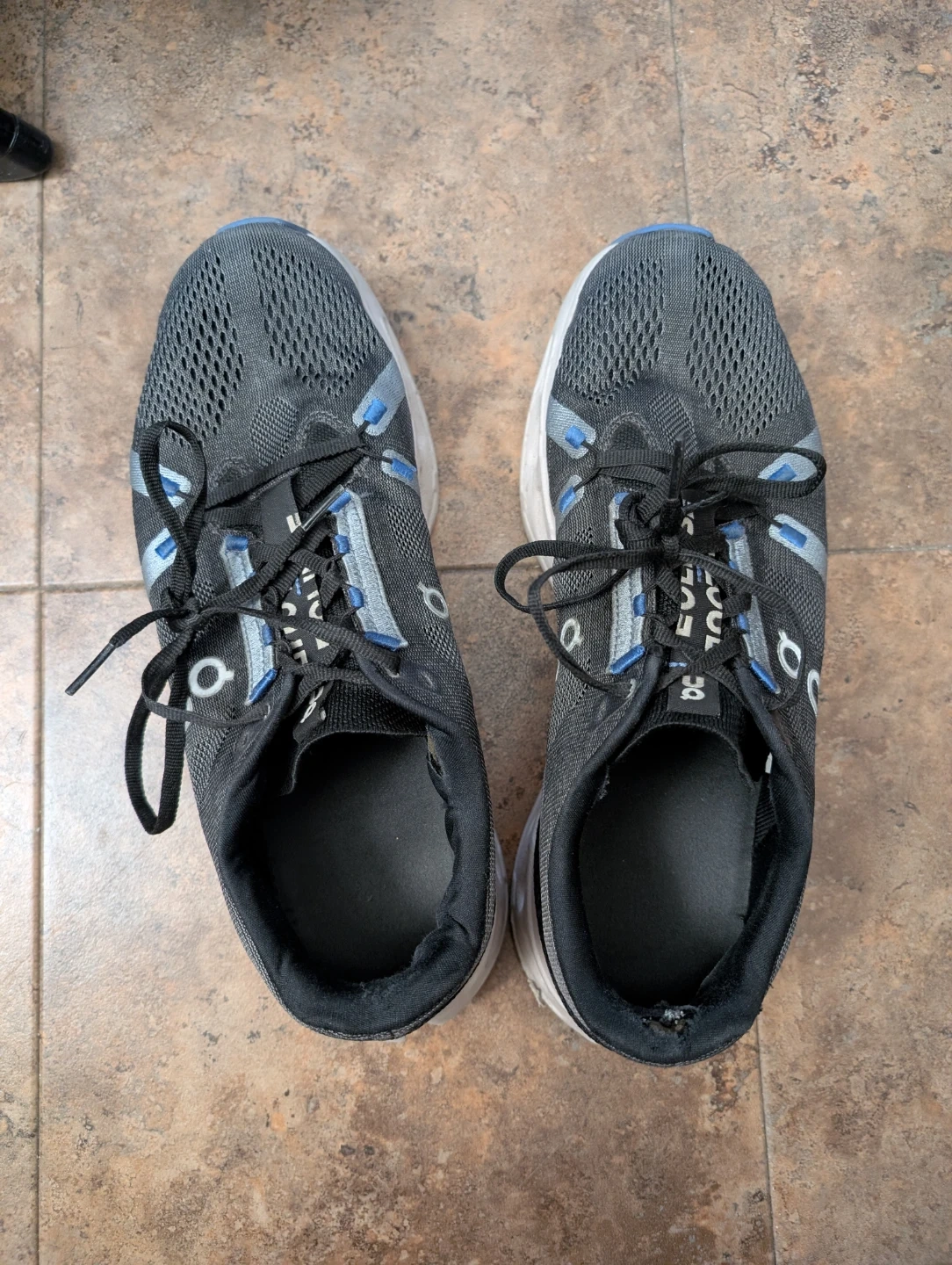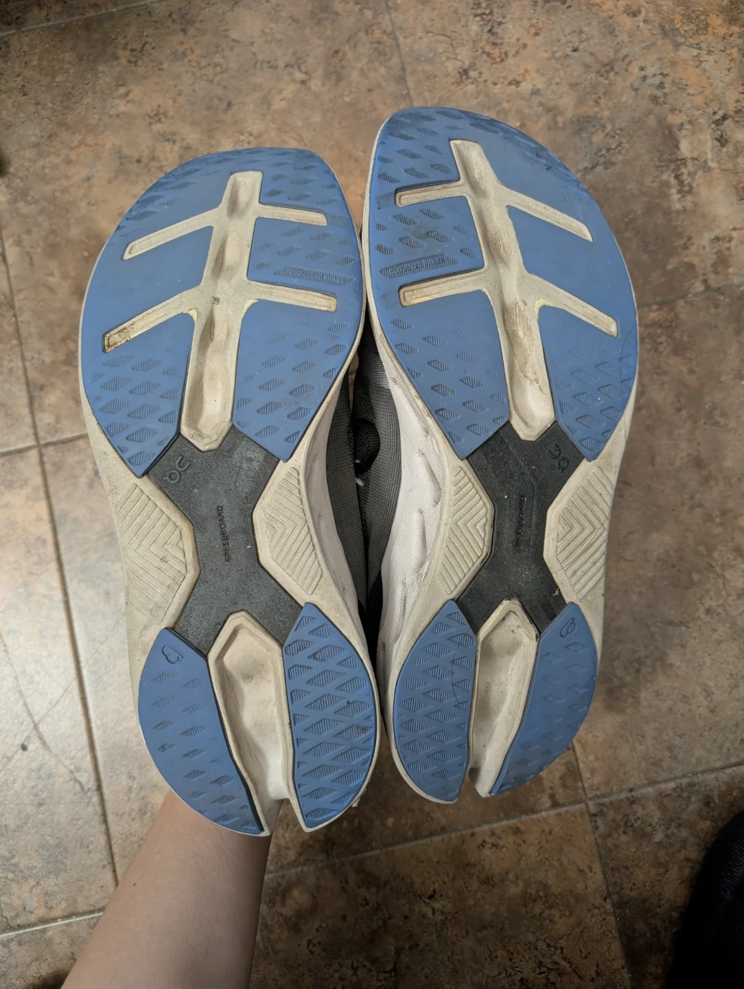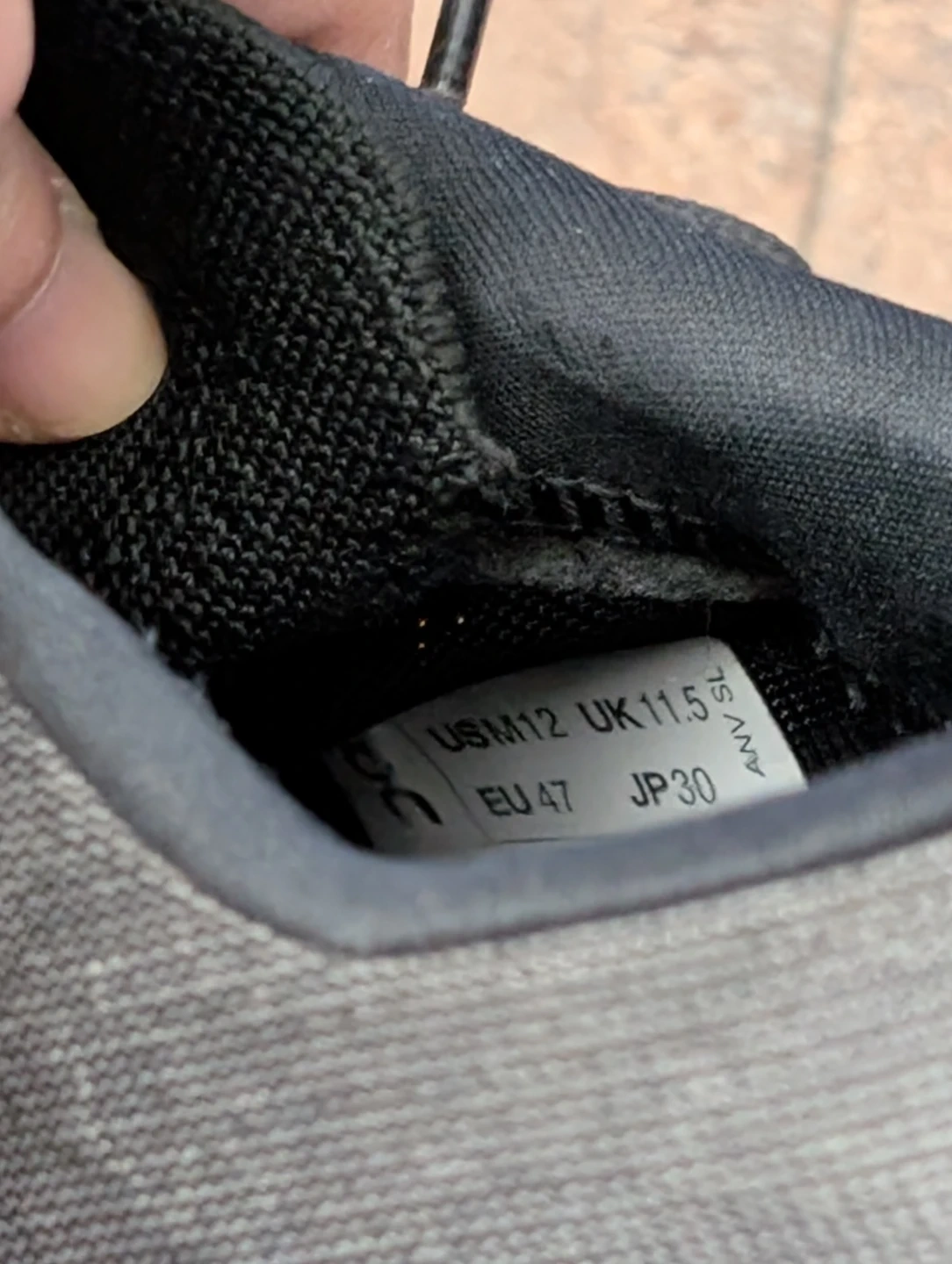 Selling a pair of On Cloudflyer running shoes in US men's size 12. They show some signs of wear, particularly around the ankle area, but still have plenty of life left for running or everyday wear! The soles are in good condition.