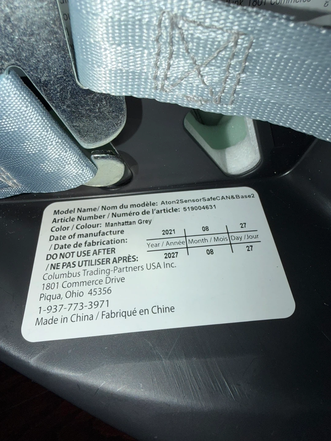 Selling a Cybex Aton 2 SensorSafe infant car seat in Manhattan Grey.