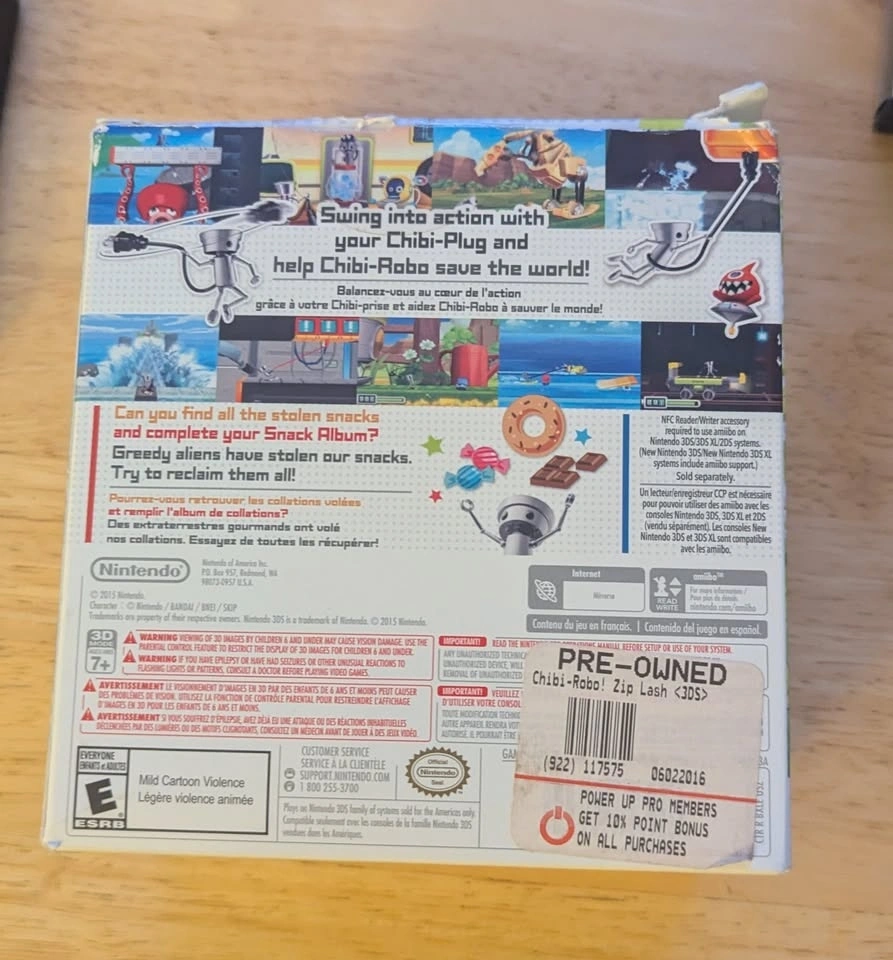 I have a copy of Chibi-Robo!: Zip Lash for Nintendo 3DS Amiibo Bundle in box with the booklet and Amiibo. The box is damaged as pictured. I am open to bundling with any of the other games I have listed as well.