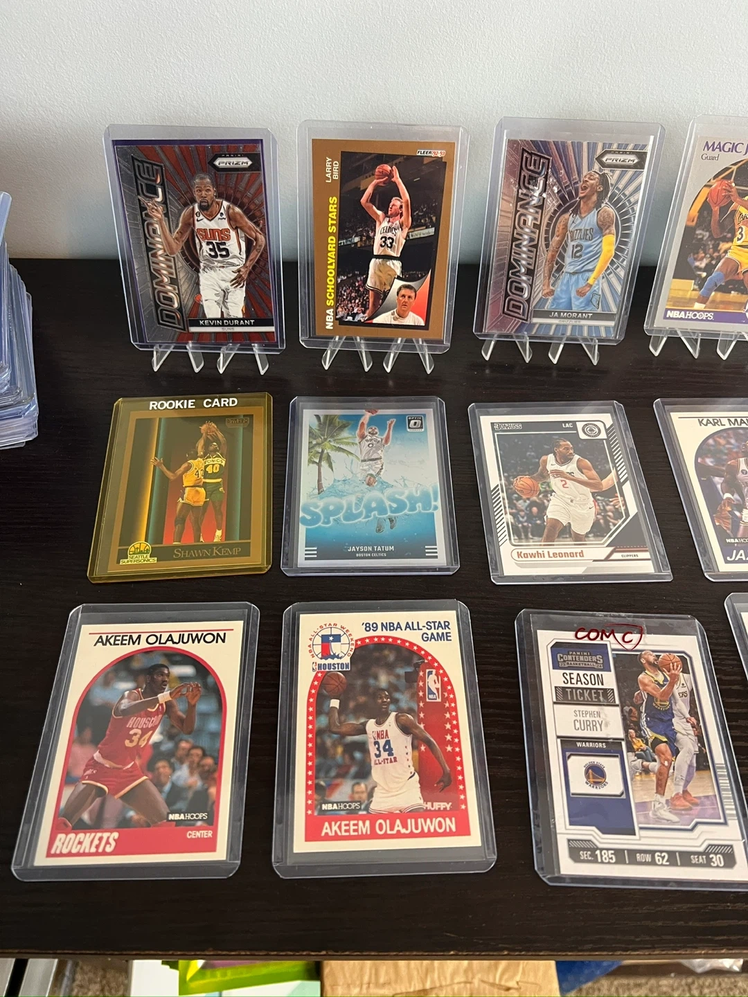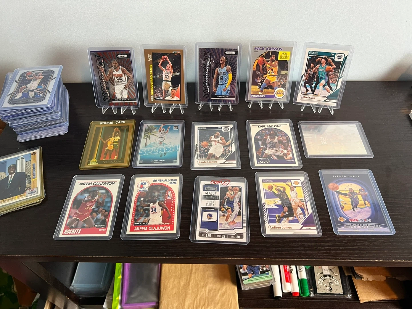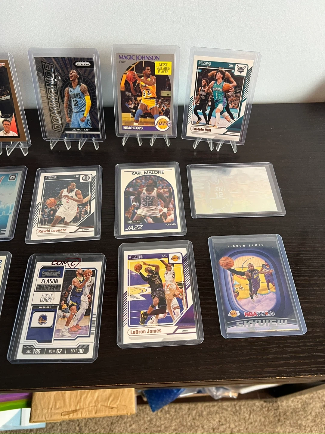 Selling a variety of basketball trading cards, including NBA Hoops and Prizm cards. Many different players and sets are available.
