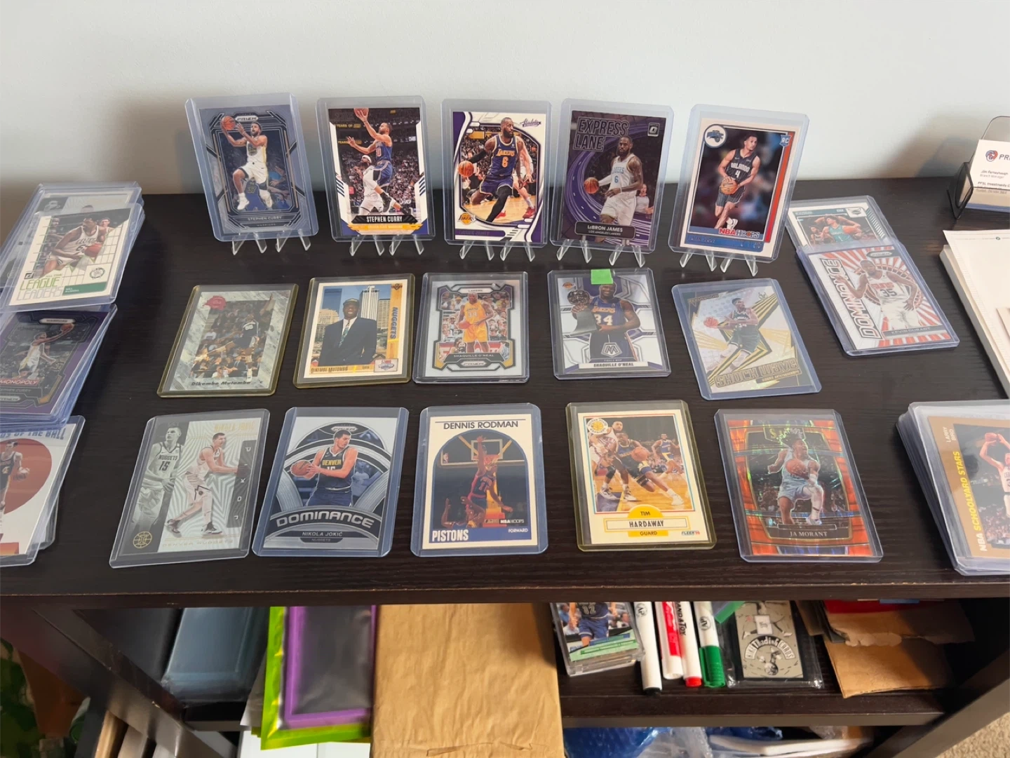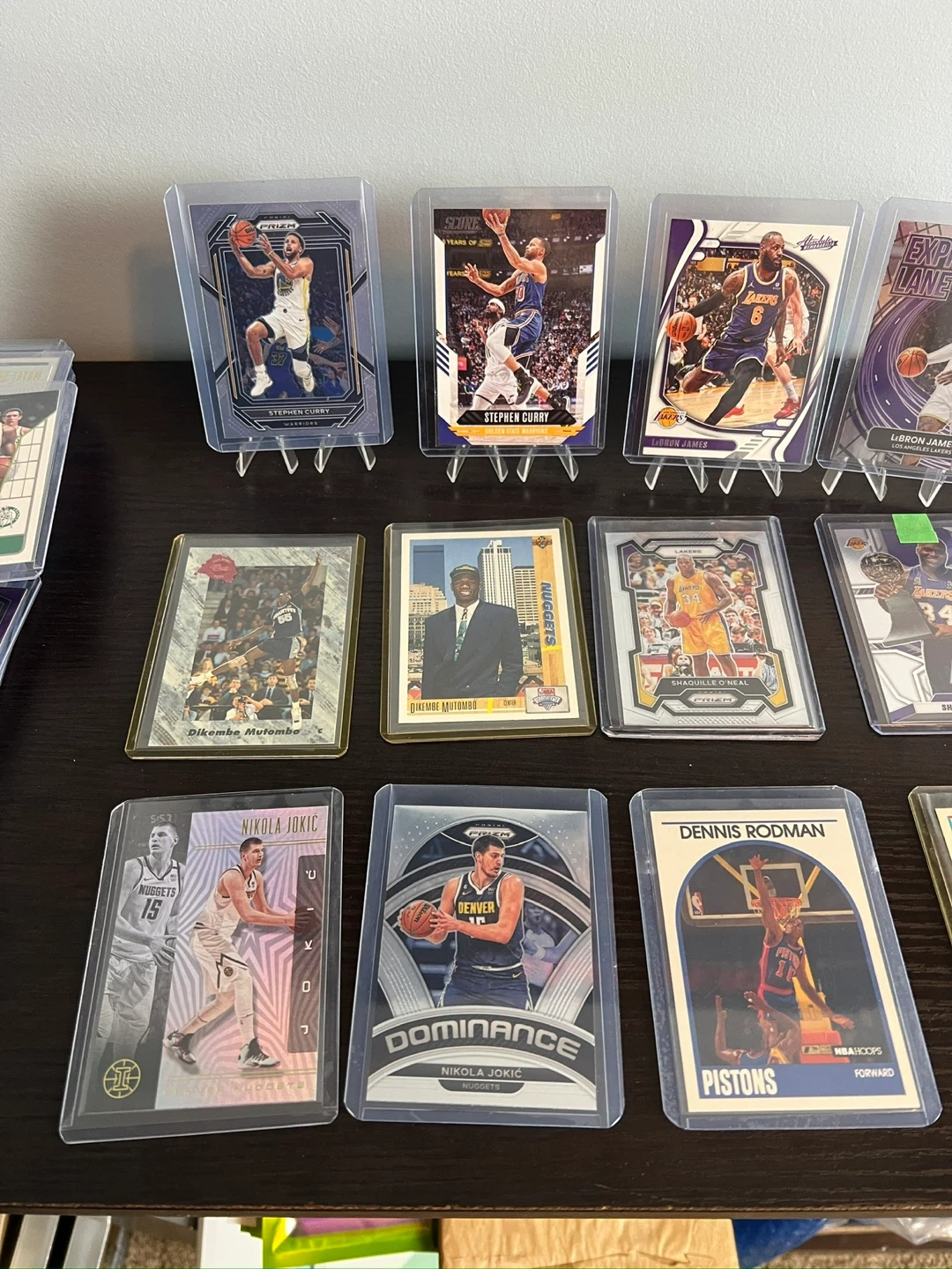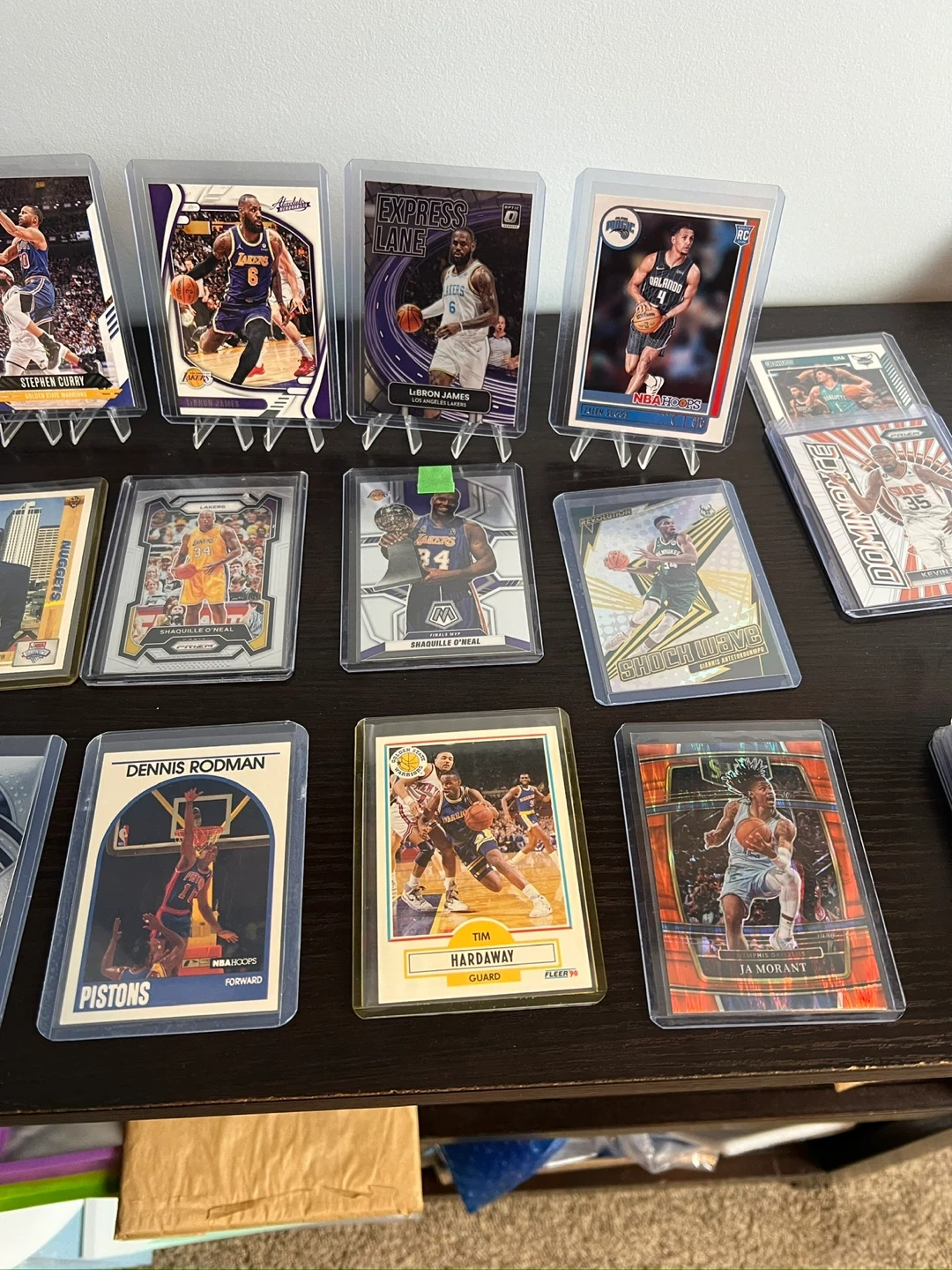 Selling a variety of basketball trading cards, including NBA Hoops and Prizm cards. Many different players and sets are available.
