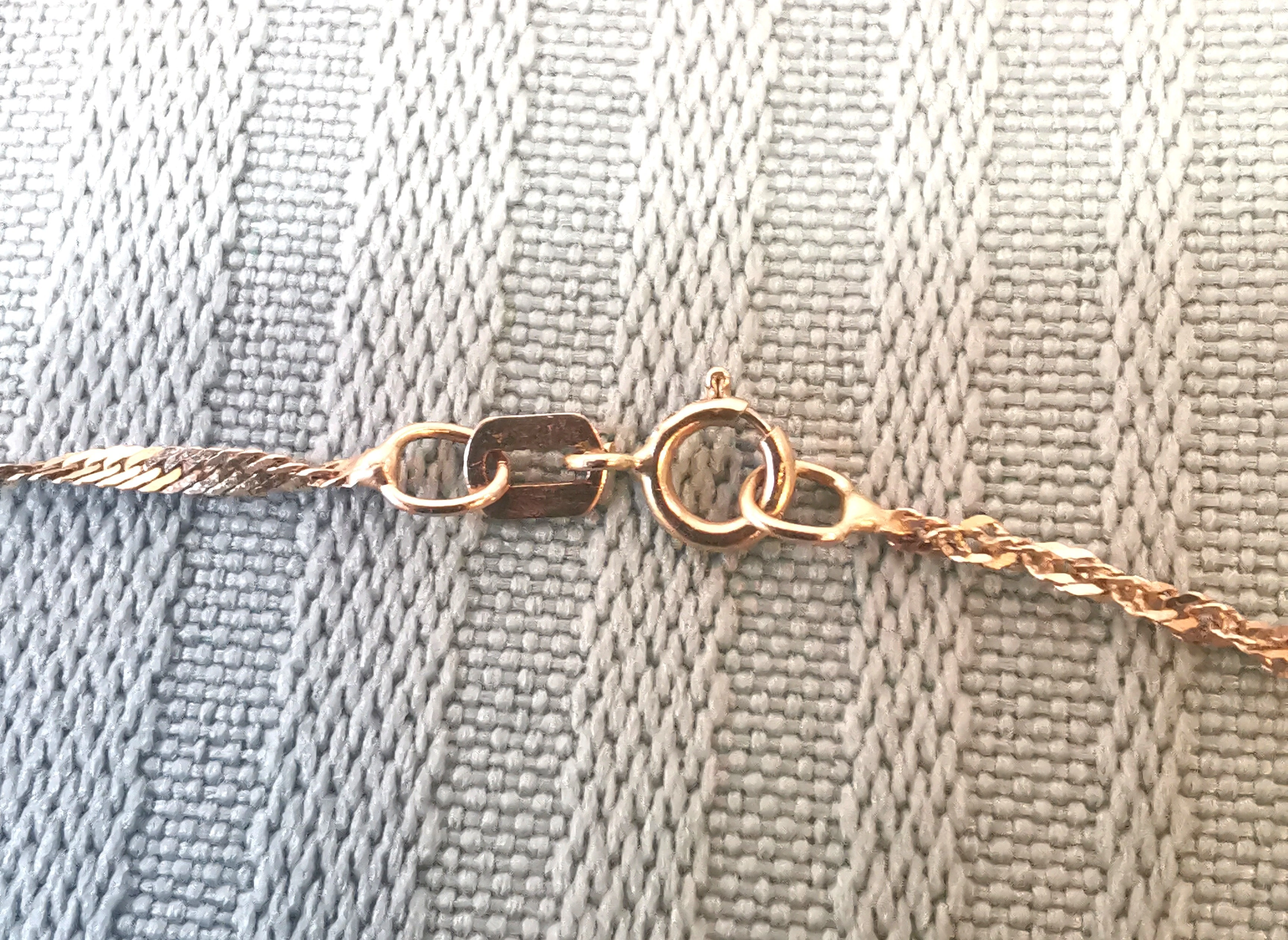 The necklace is pre-owned and intact, with a functioning clasp. Due to the extremely fine gauge, some light kinking and surface wear are visible, which is typical for chains of this thickness. Please review photos carefully to ensure this style meets your expectations.