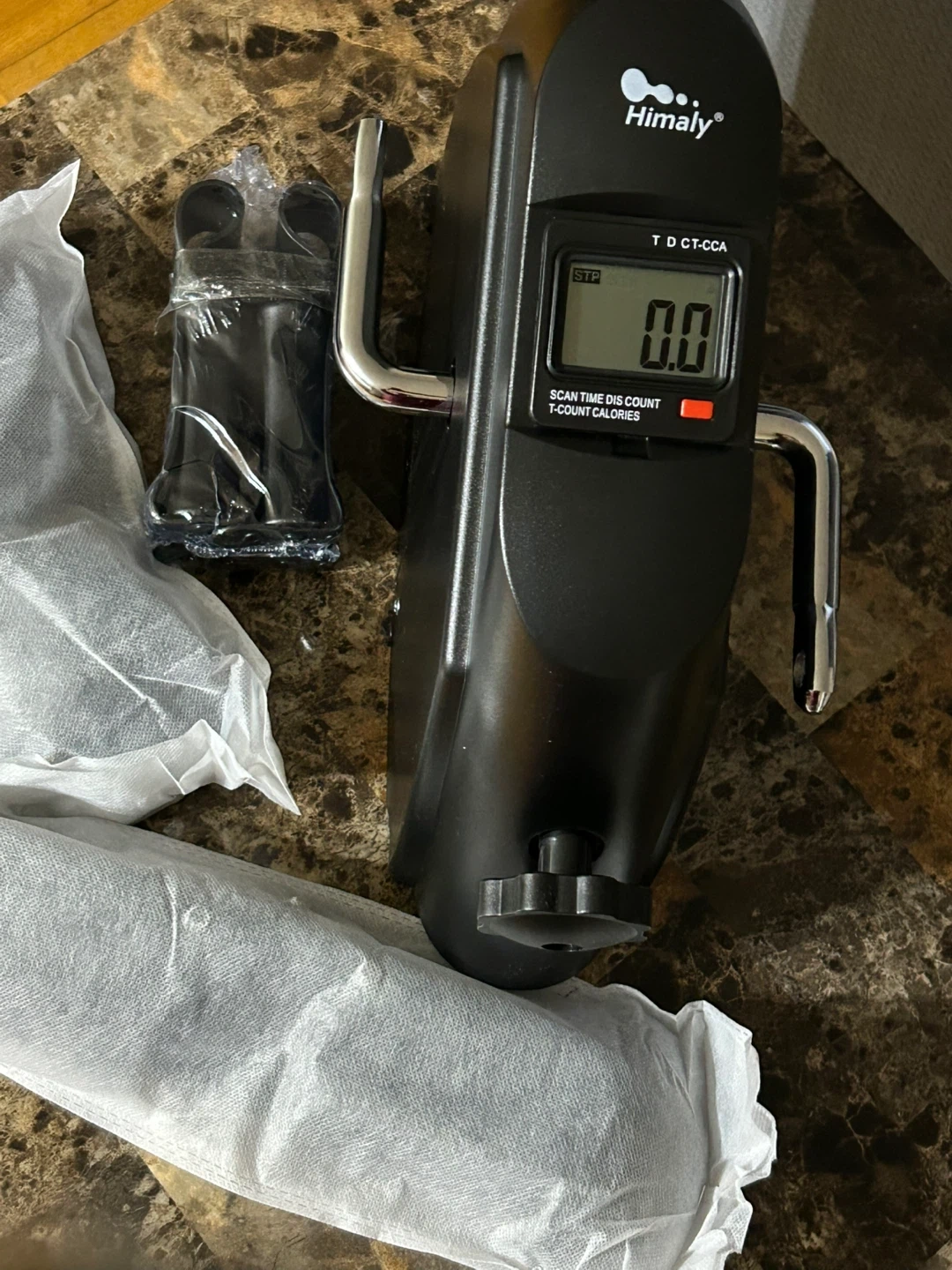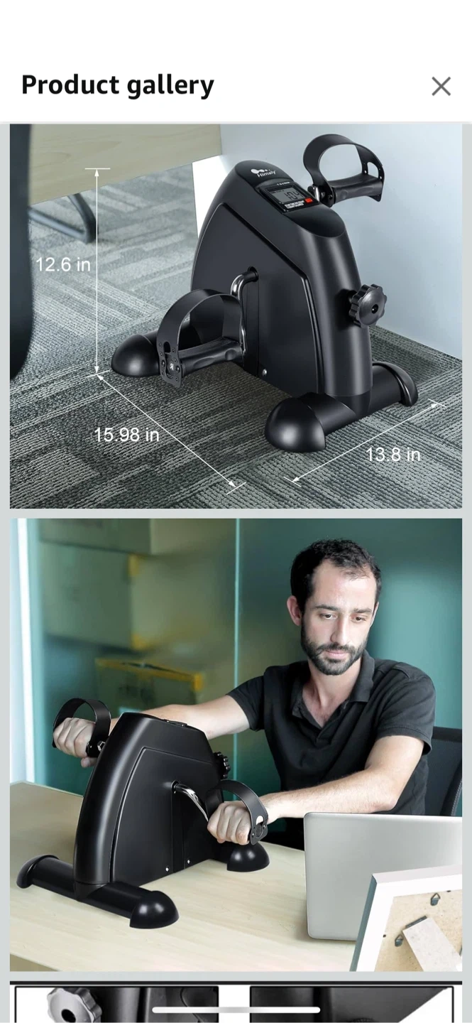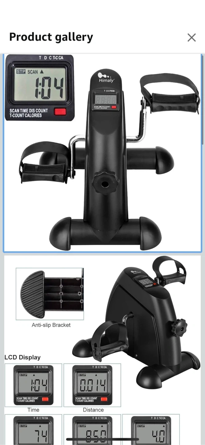 I'm selling a brand new Himaly Mini Exercise Bike! It's in great condition and comes with the box. This mini exercise bike is perfect for getting in some exercise while working from home or watching TV. It's lightweight and portable, so you can easily move it around. It has a display that shows scan time, distance, count, and calories!