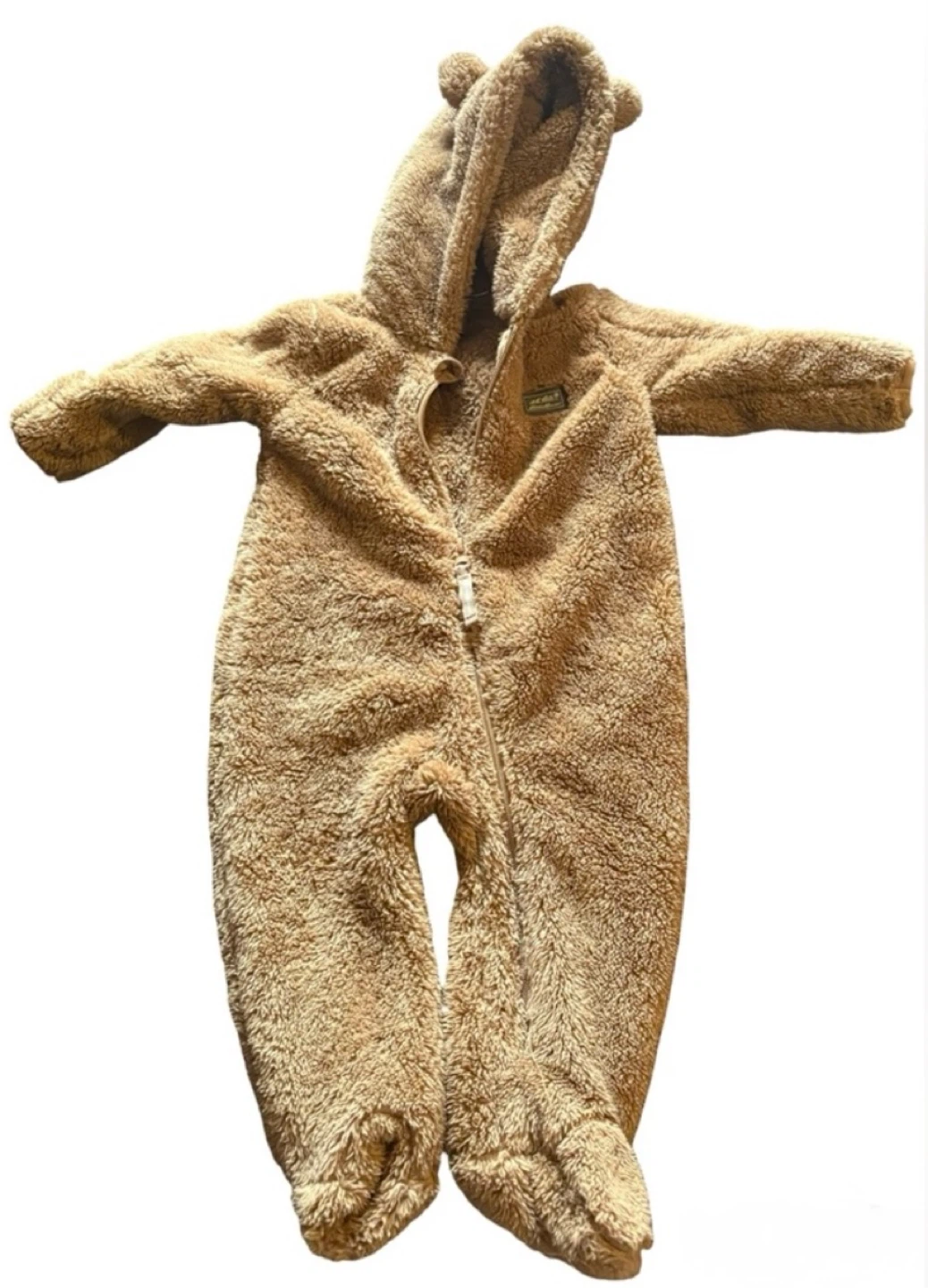 Soft and plush Eddie Bauer footie with cozy hood and bear ears.