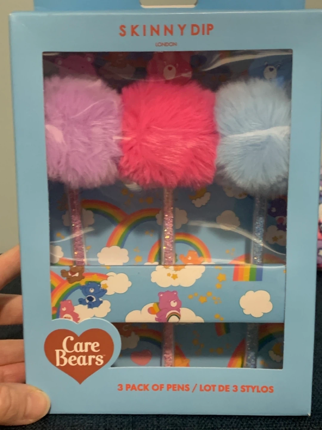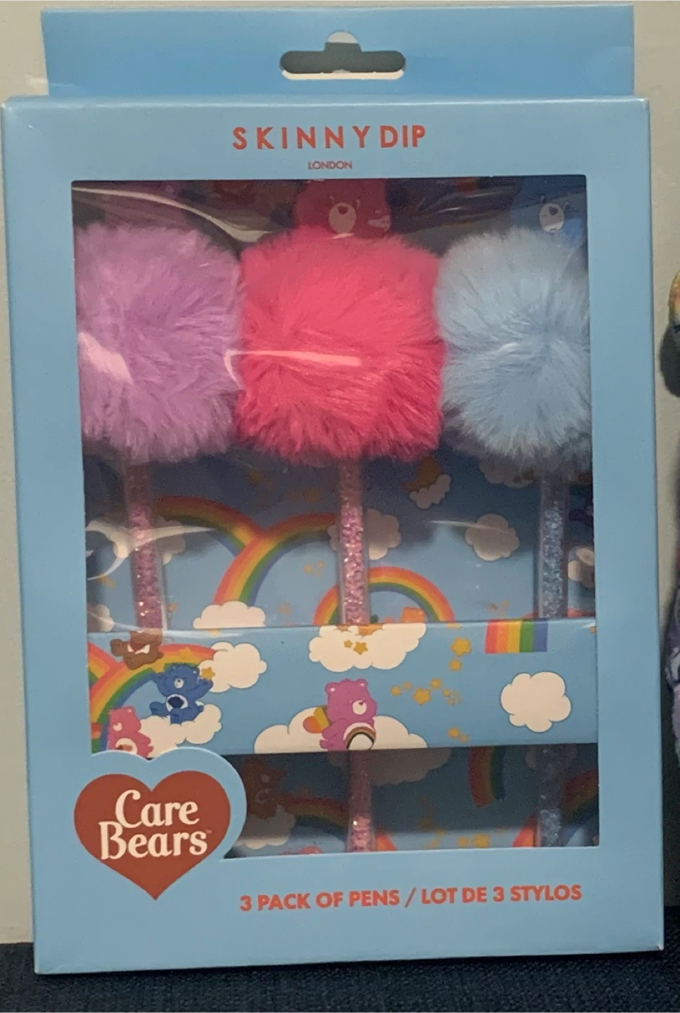 Brand new Skinnydip London Care Bears pen set! This adorable 3-pack features fluffy pom-pom toppers in pastel colours. Perfect for adding a touch of fun to your desk or as a cute gift for a Care Bears fan