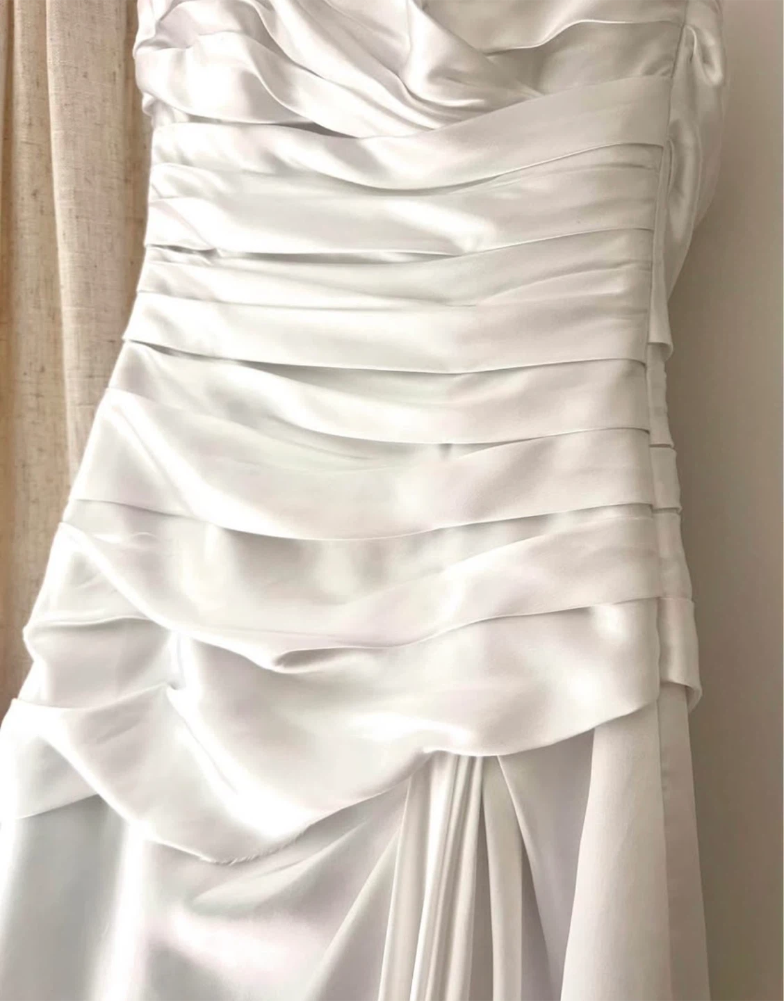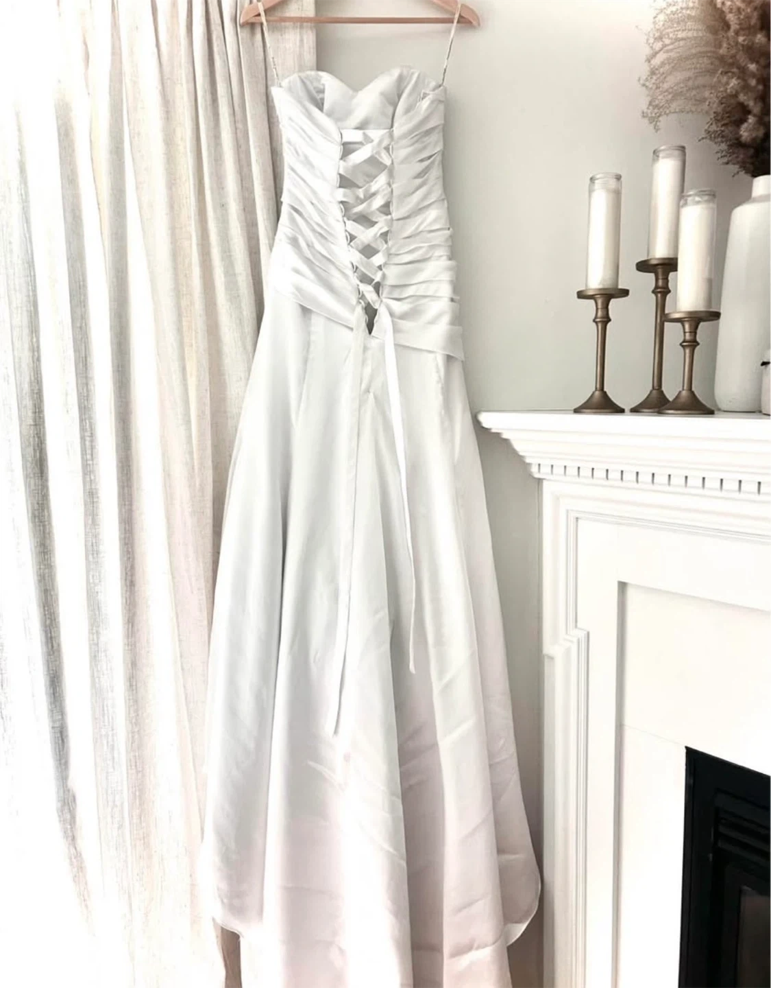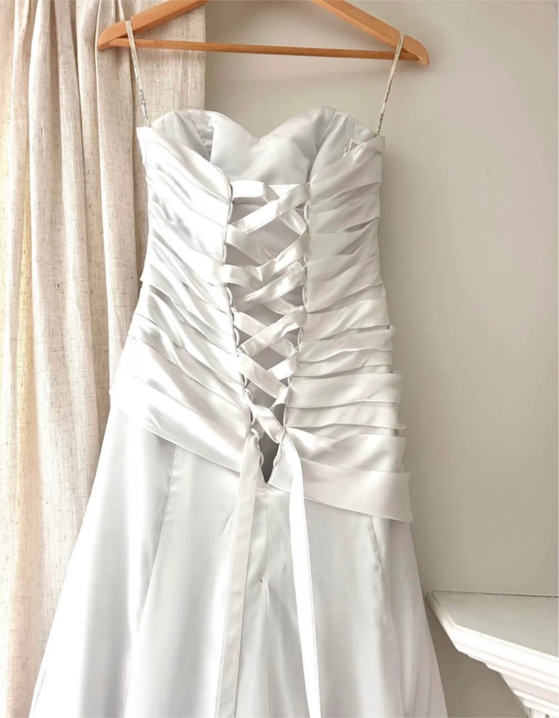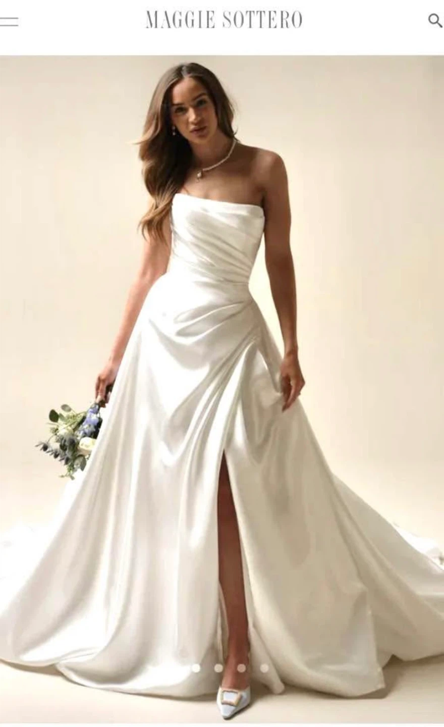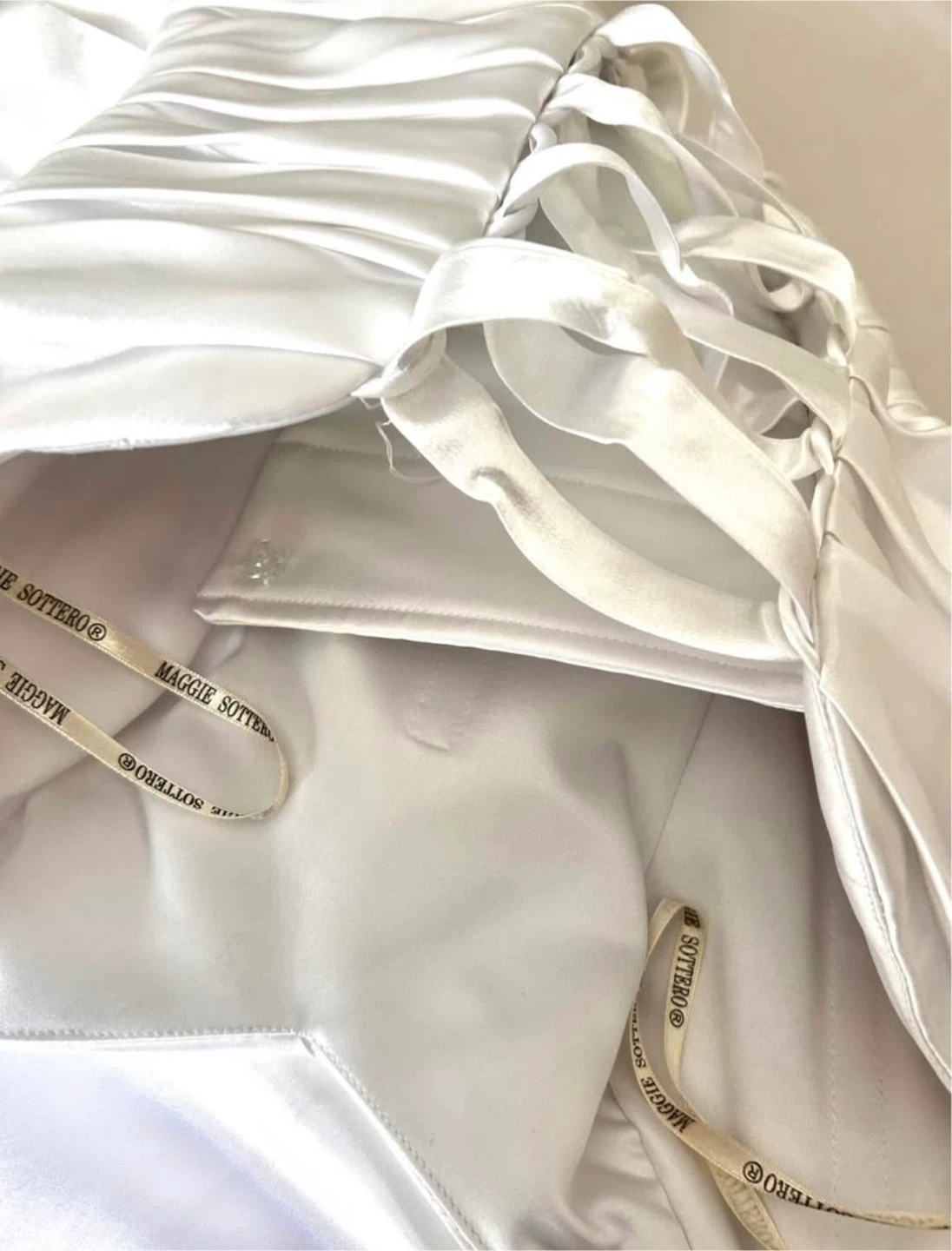 Selling a beautiful Maggie Sottero wedding dress. It's a stunning white gown with a unique design.