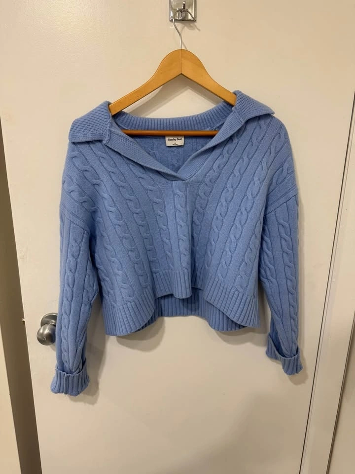 Lola sweater in size medium, but I lowkey shrunk it a little so it fits more like a small. I’ve washed it since the first wash, and it doesn’t shrink anymore.