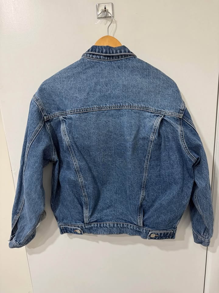 Boyfriend/bomber fit denim jacket, 100% cotton made in turkey. Size XS, but fits more like a S/M. Original price was $150.