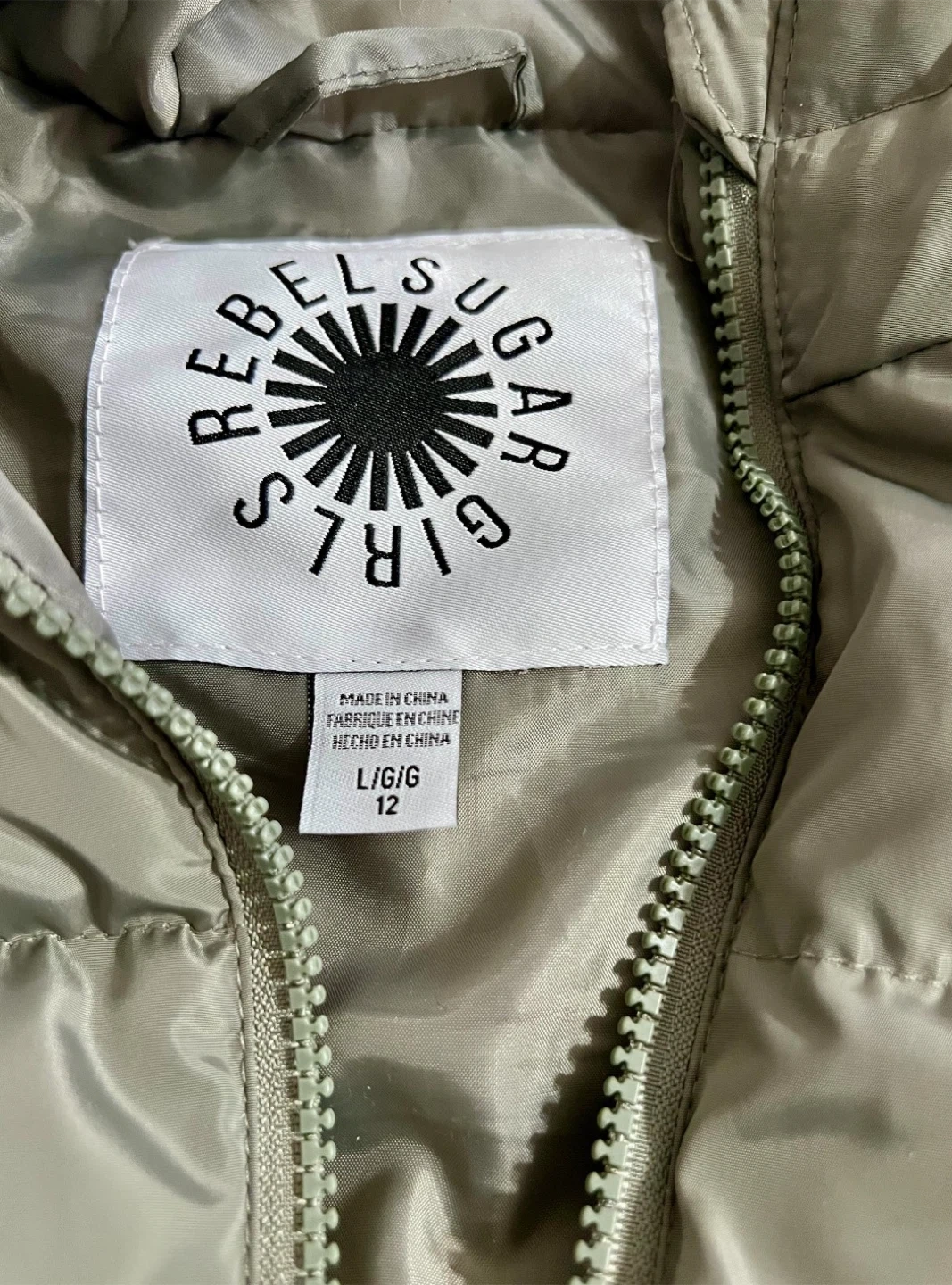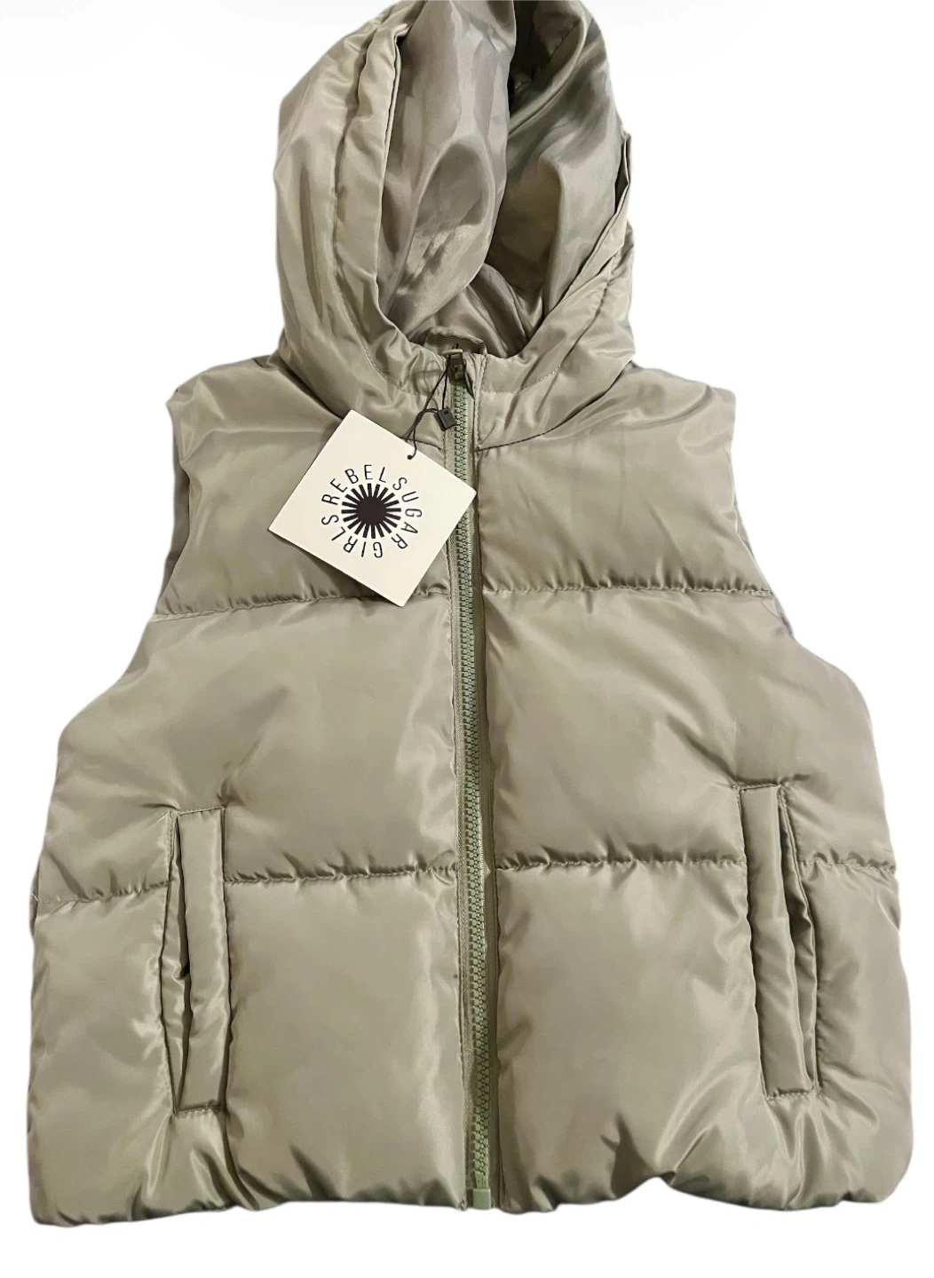 Brand new, never worn puffer vest in a beautiful olive green colour.