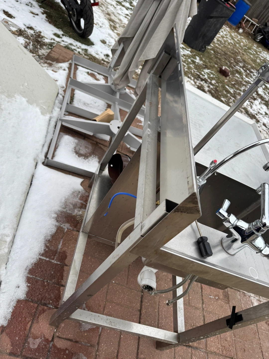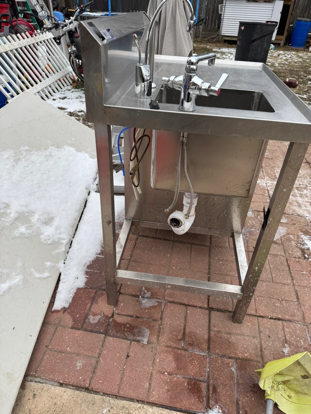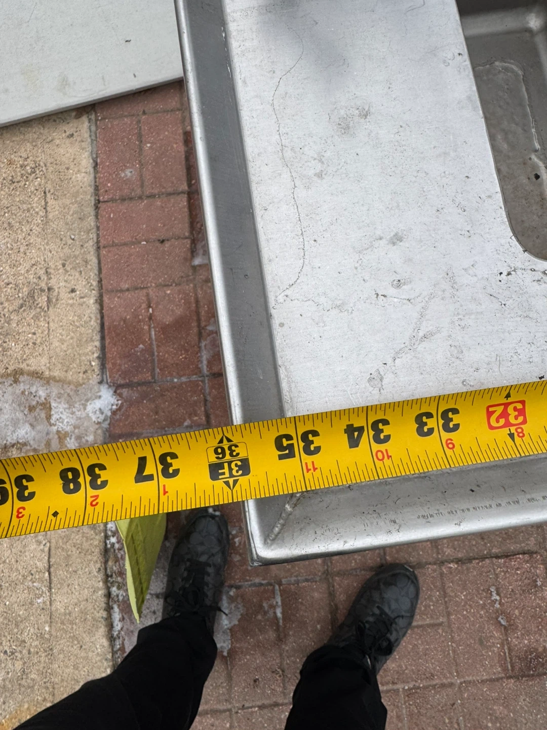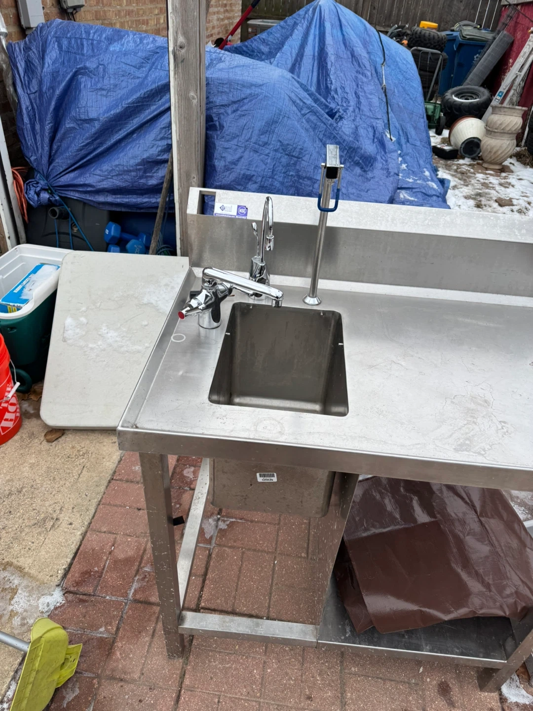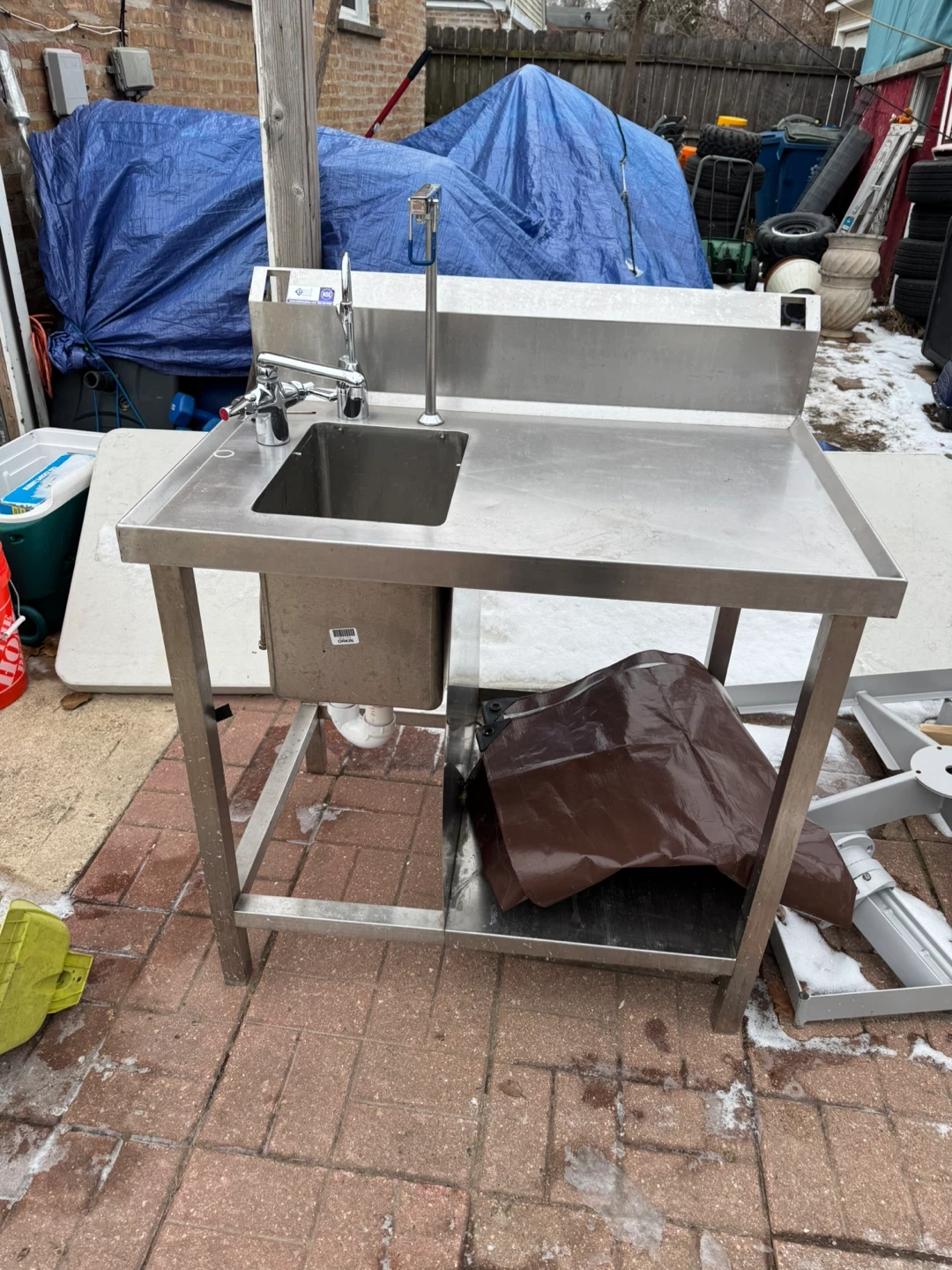 Selling a stainless steel utility sink, perfect for a garage or outdoor workspace. It measures approximately 37 inches in length and 25 inches in width. It's sturdy and ready for use!