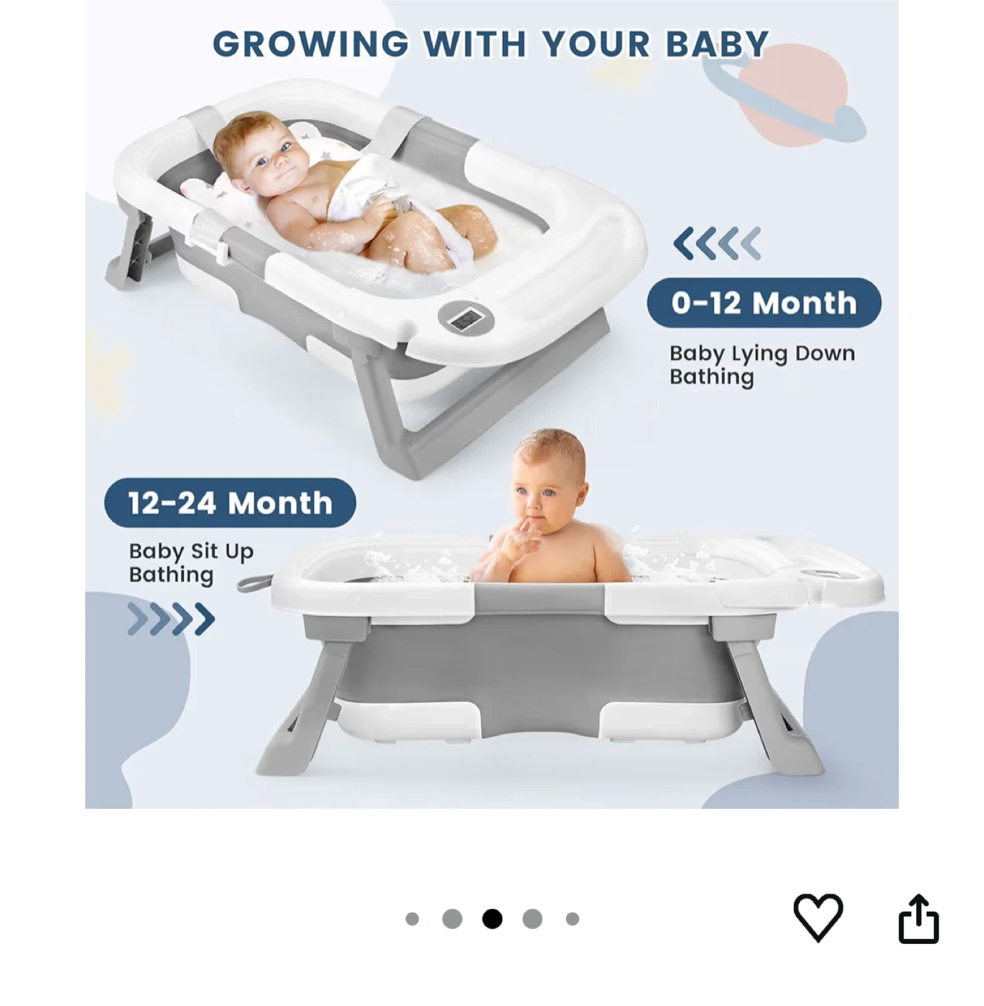 I'm selling a foldable baby bathtub, perfect for babies from 0-24 months! It's designed to grow with your baby, supporting them as they transition from lying down to sitting up during bath time. The tub features soft padding and clips for fixing, ensuring your little one's comfort and safety, and helps prevent choking. It's also foldable and ready to travel, making it convenient for families on the go
