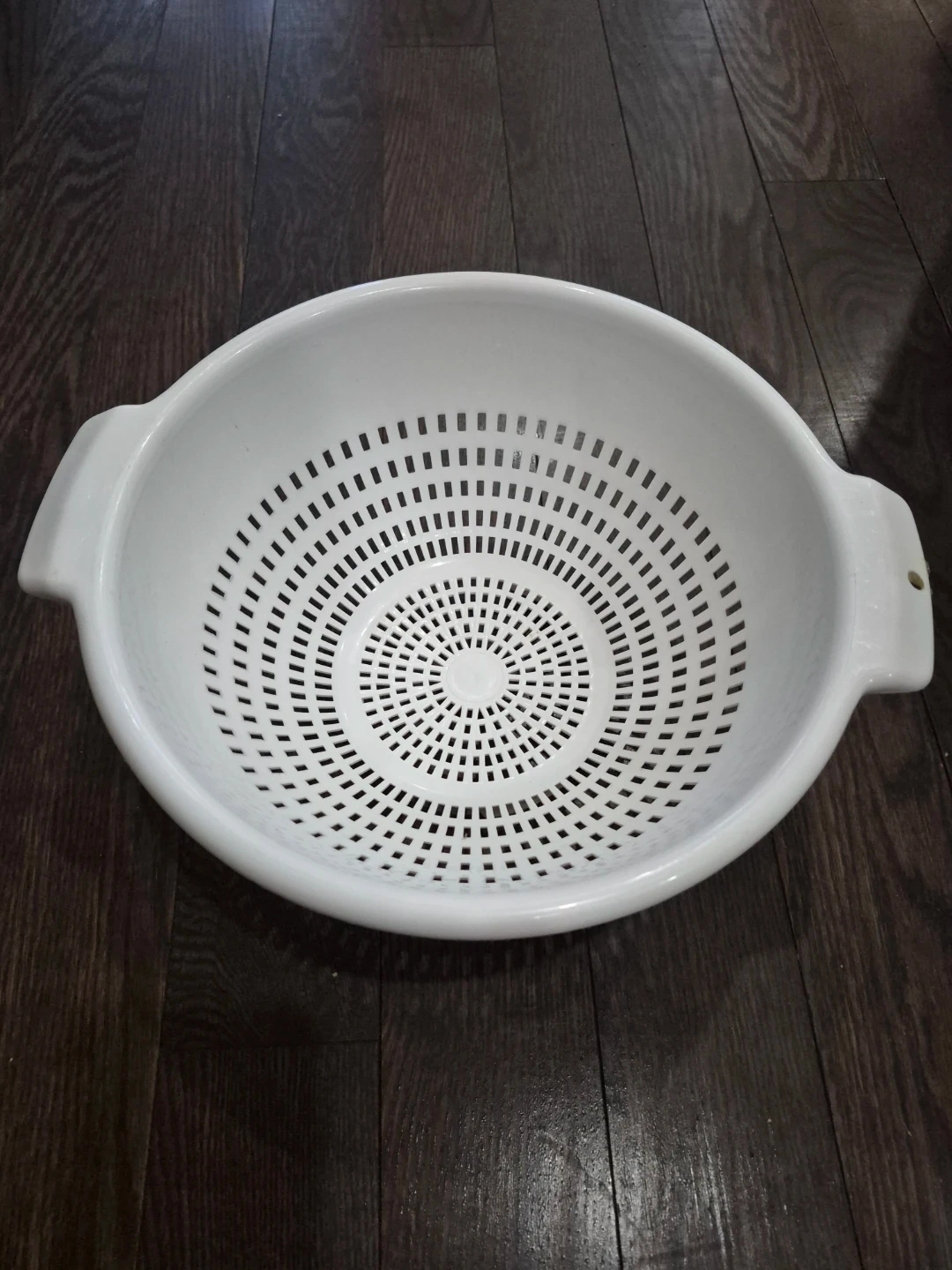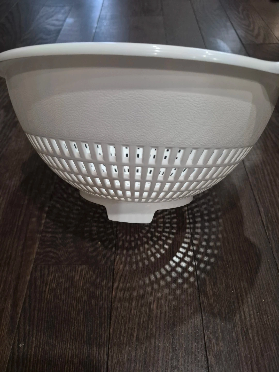 Selling a white plastic colander, perfect for rinsing fruits and vegetables! It's in great shape and ready to use in your kitchen