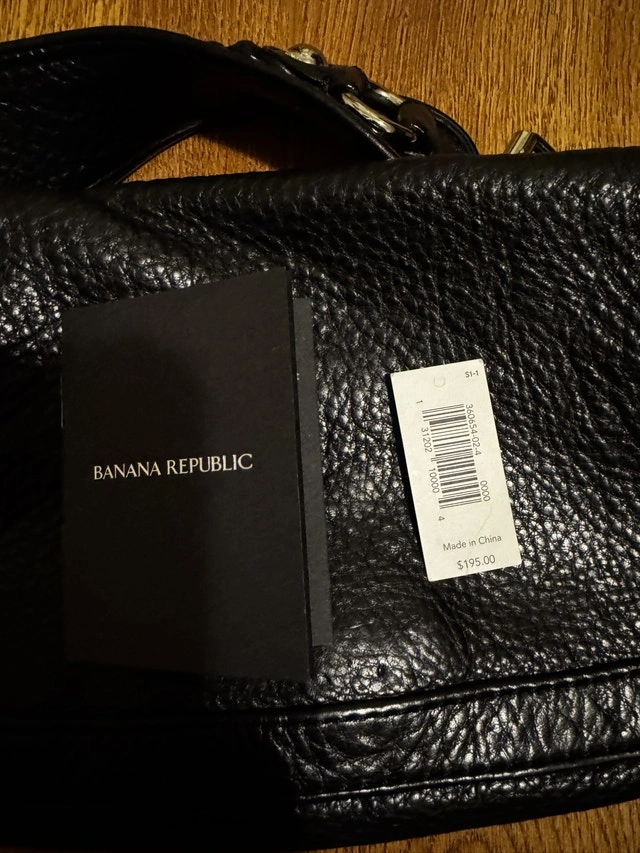Gently used Banana Republic black leather handbag. Made from top-grade Italian leather, in excellent condition with minor wear on hardware that’s barely noticeable. Only handbag included. Approx. dimensions: 10.5”x6” MSRP $195 CAD Pickup preferred at Edmonds Skytrain station Cash preferred