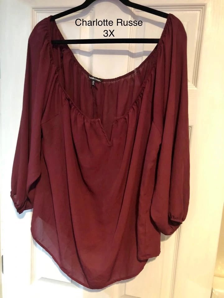 Cranberry off-shoulder top, 3X