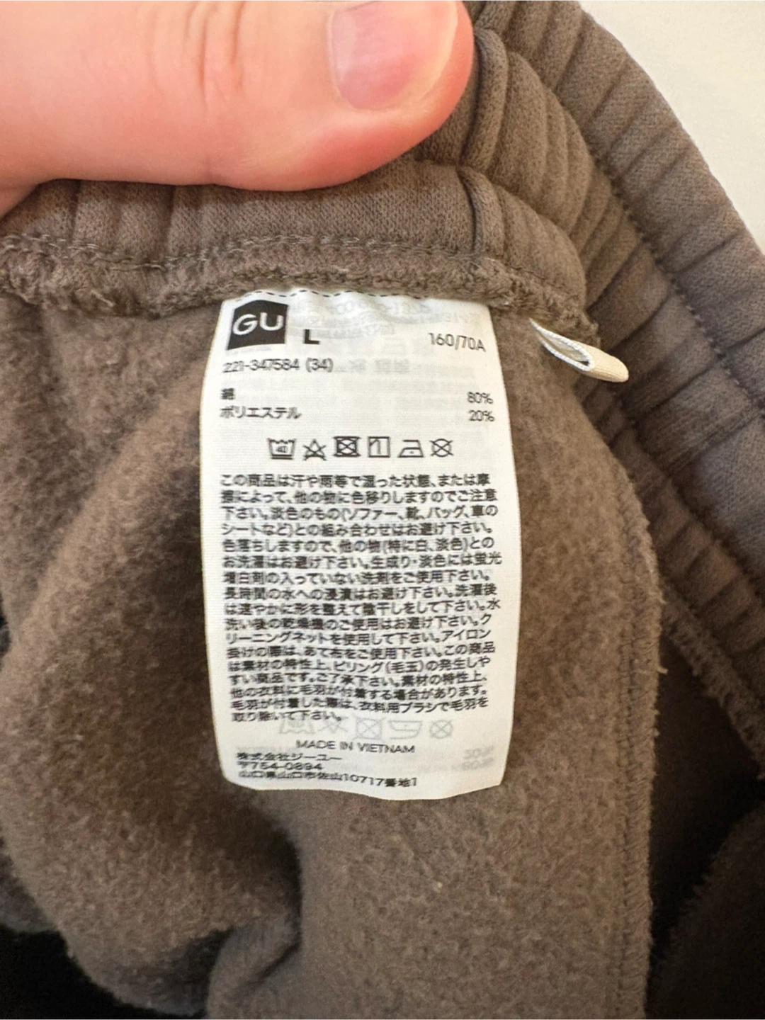Japan brand GU sweatpants. Fits approx. waist 28–30 inches. Elastic waistband with drawstring.
