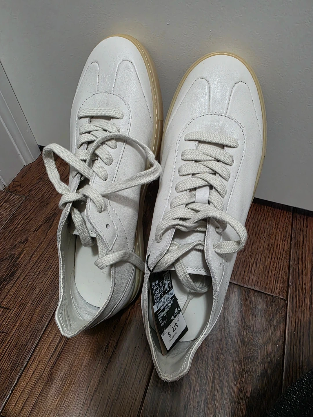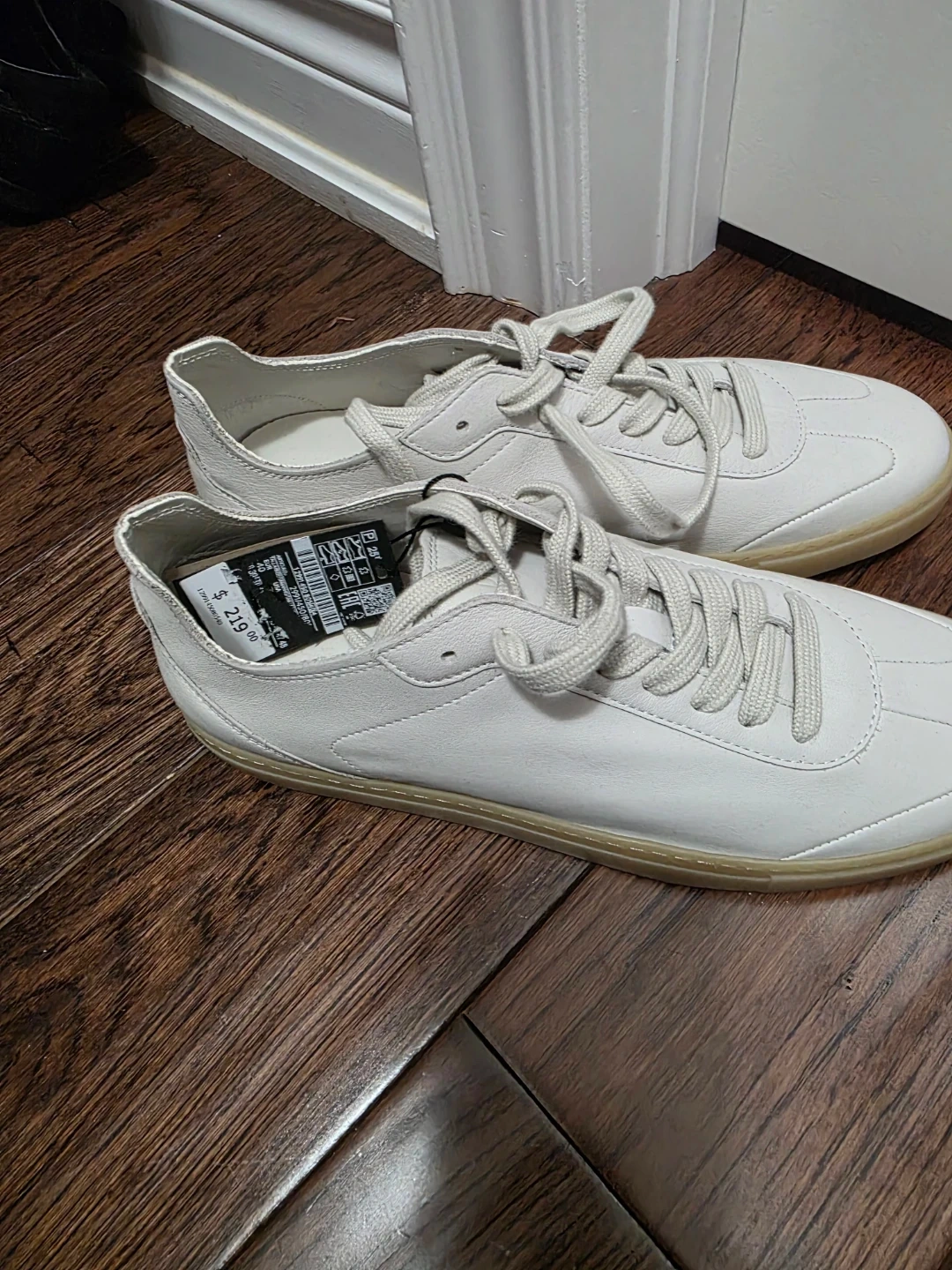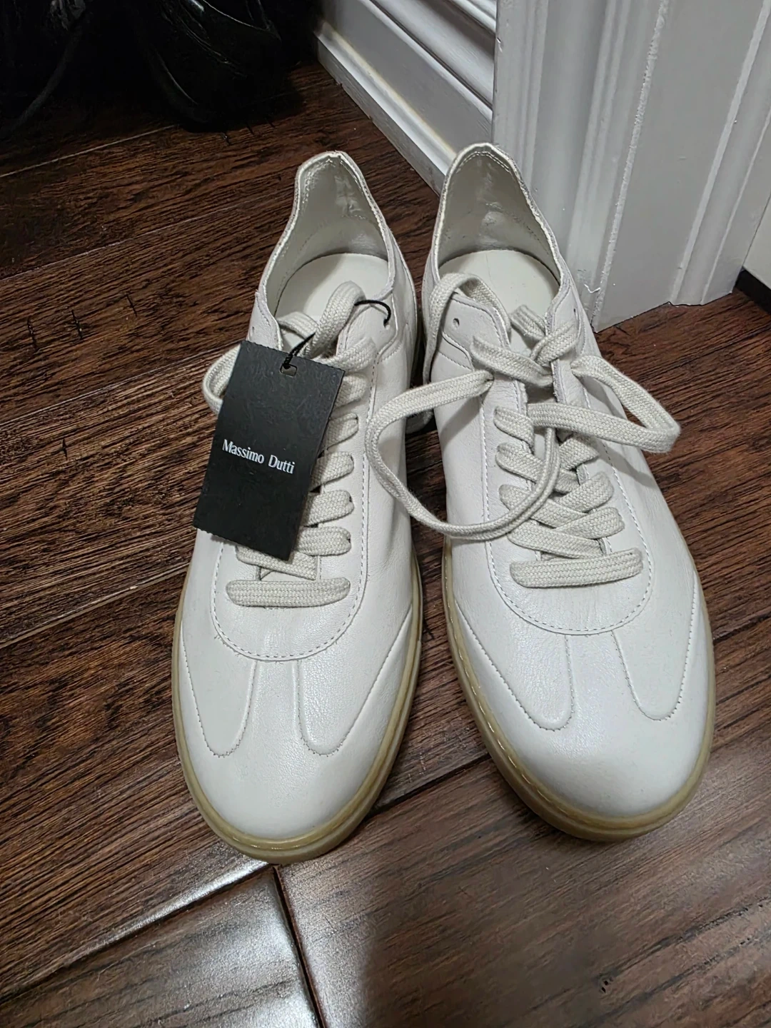 Selling a pair of Massimo Dutti white leather sneakers in new condition. They are a European size 40, which translates to a US size 7.5. These stylish sneakers are perfect for everyday wear and would make a great addition to your wardrobe