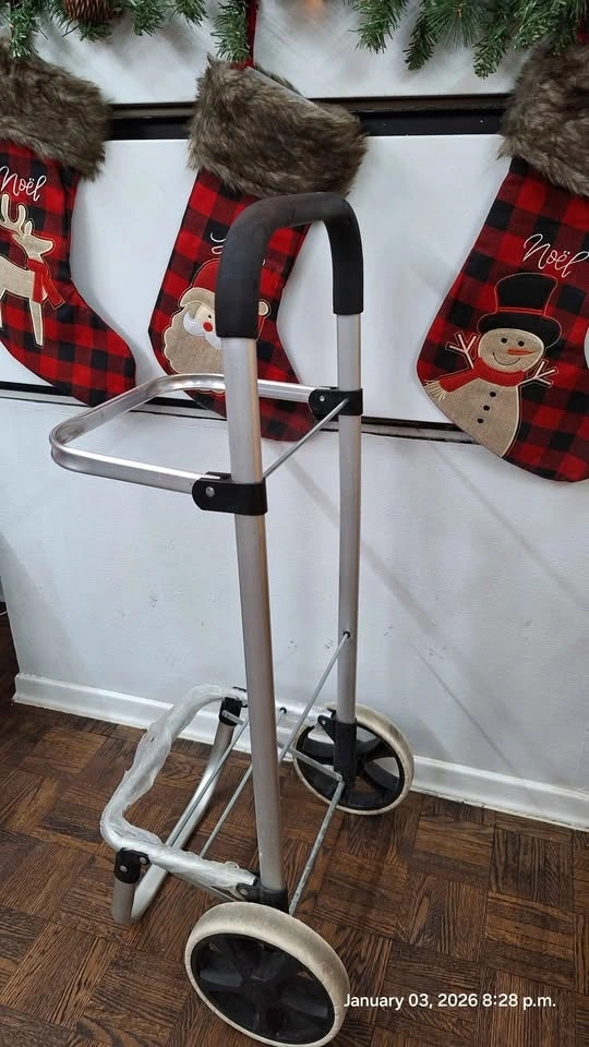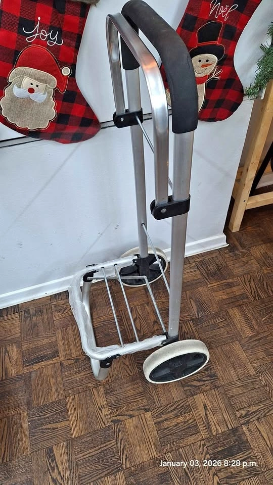 Sturdy dolly trolley frame, suitable for moving boxes, bags, or light household items. Easy to roll, lightweight, and convenient for everyday use. In good working condition.