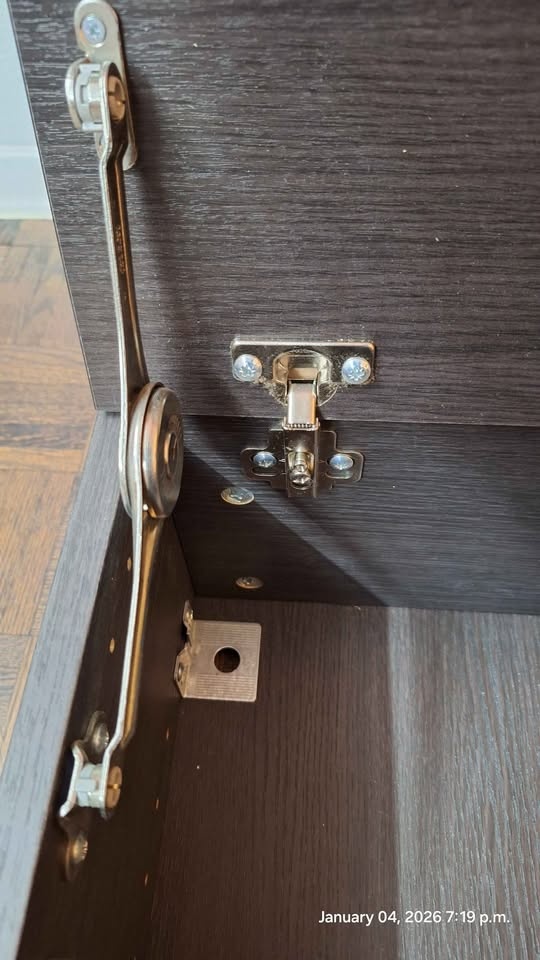 Has a lift-up door with high-quality soft-close/stay-open hinges and a minimalist silver handle.