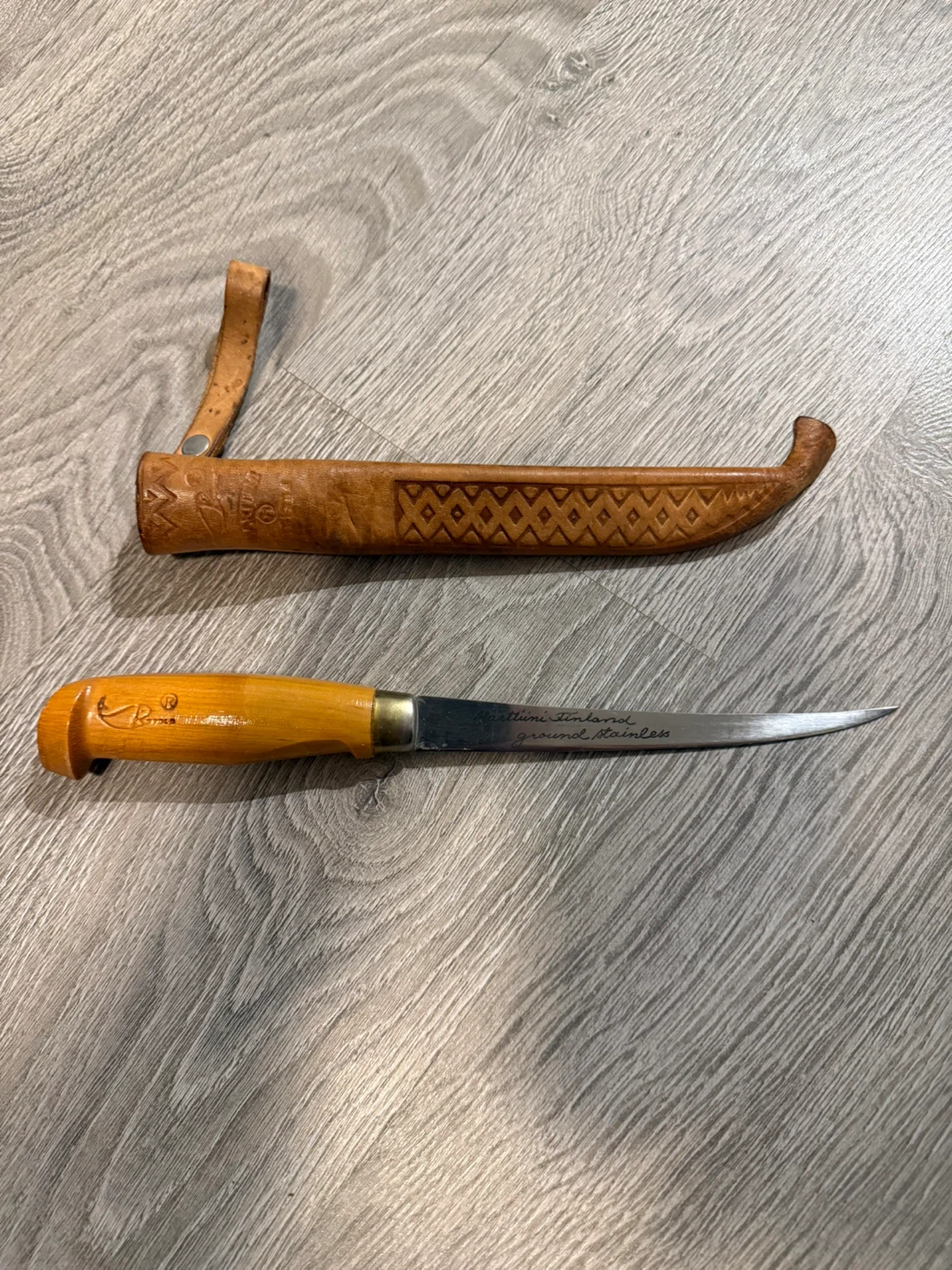 Buy & SellVintage J. Marttiini Finland Filet KnifeVintage J. Marttiini Finland Filet Knife$40Vintage J. Marttiini Finland Filet Knife With Leather Sheath 6” BladeWHERE TO MEETCheck LocationView MapSELLERverifiedMityaRichvale1146 reviews0 chats·2 favorites·29 viewsSEND CHAT TO SELLERHi Mitya! I’m interested in your listing.Hi Mitya! I’m interested in your listing.Get the Karrot app to chatSign In to chat