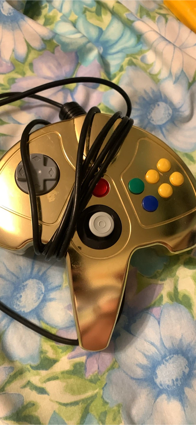 Selling a gold Nintendo 64 controller! It's in good condition and ready for some retro gaming action. Perfect for reliving those classic N64 memories!