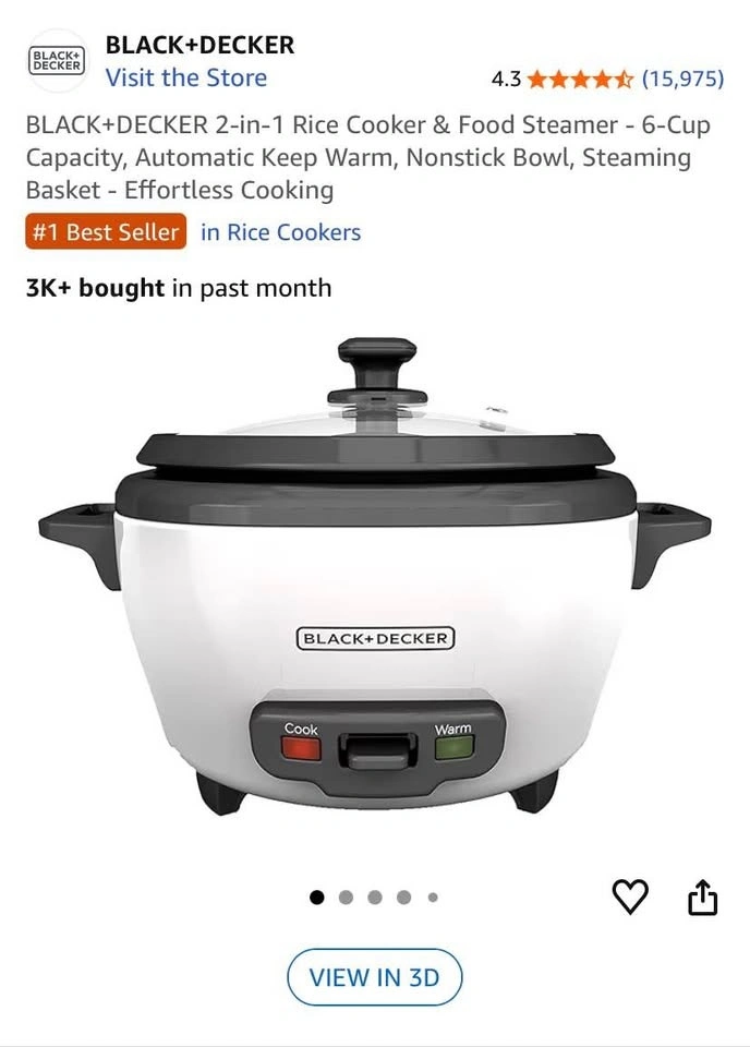 Black+Decker 6-Cup Rice Cooker & Food Steamer – New