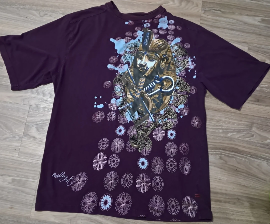 Cool purple Reckless Minds graphic tee in great condition! The design features an Egyptian-inspired graphic on the front. Perfect for adding a bit of edge to your wardrobe