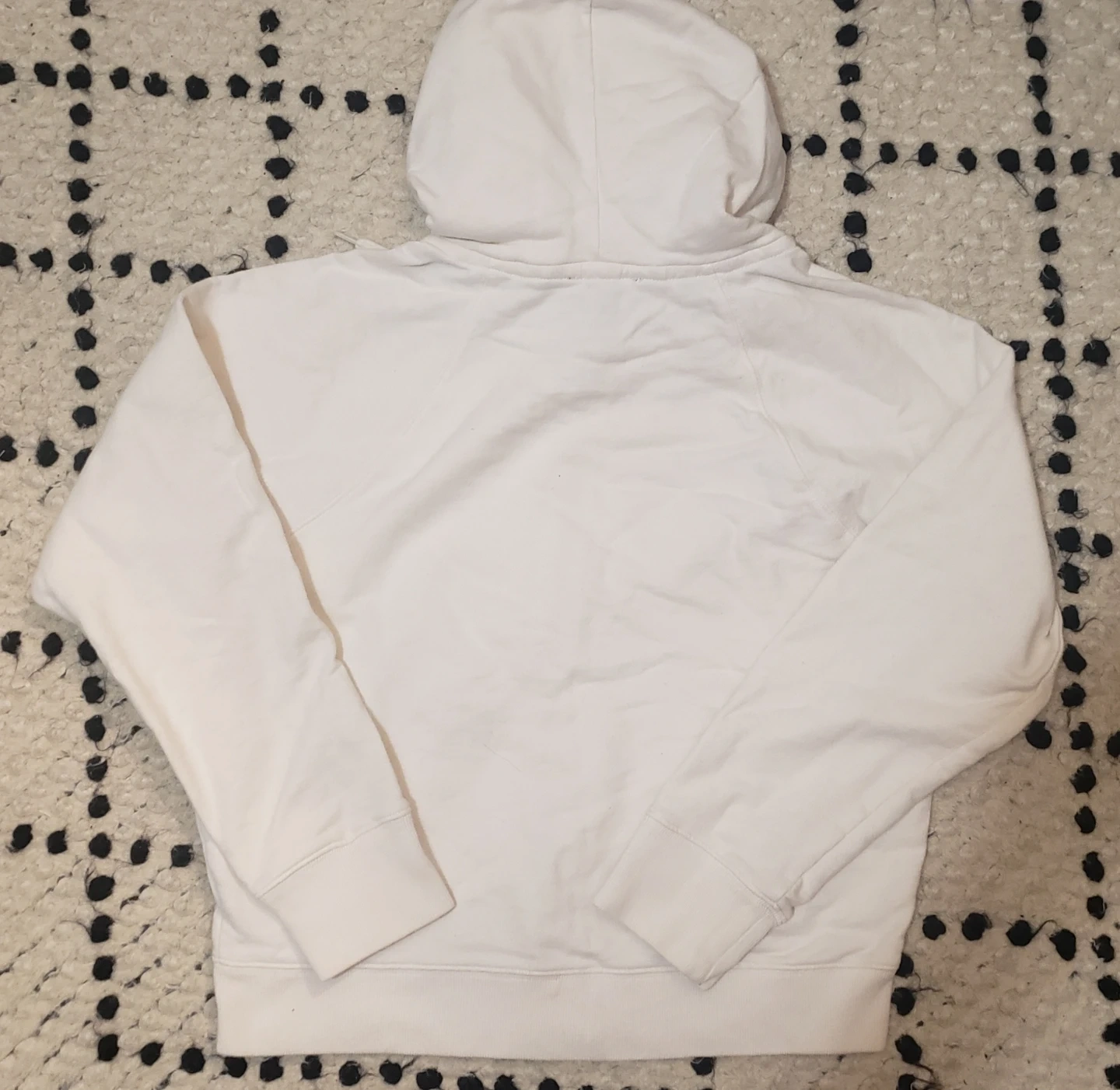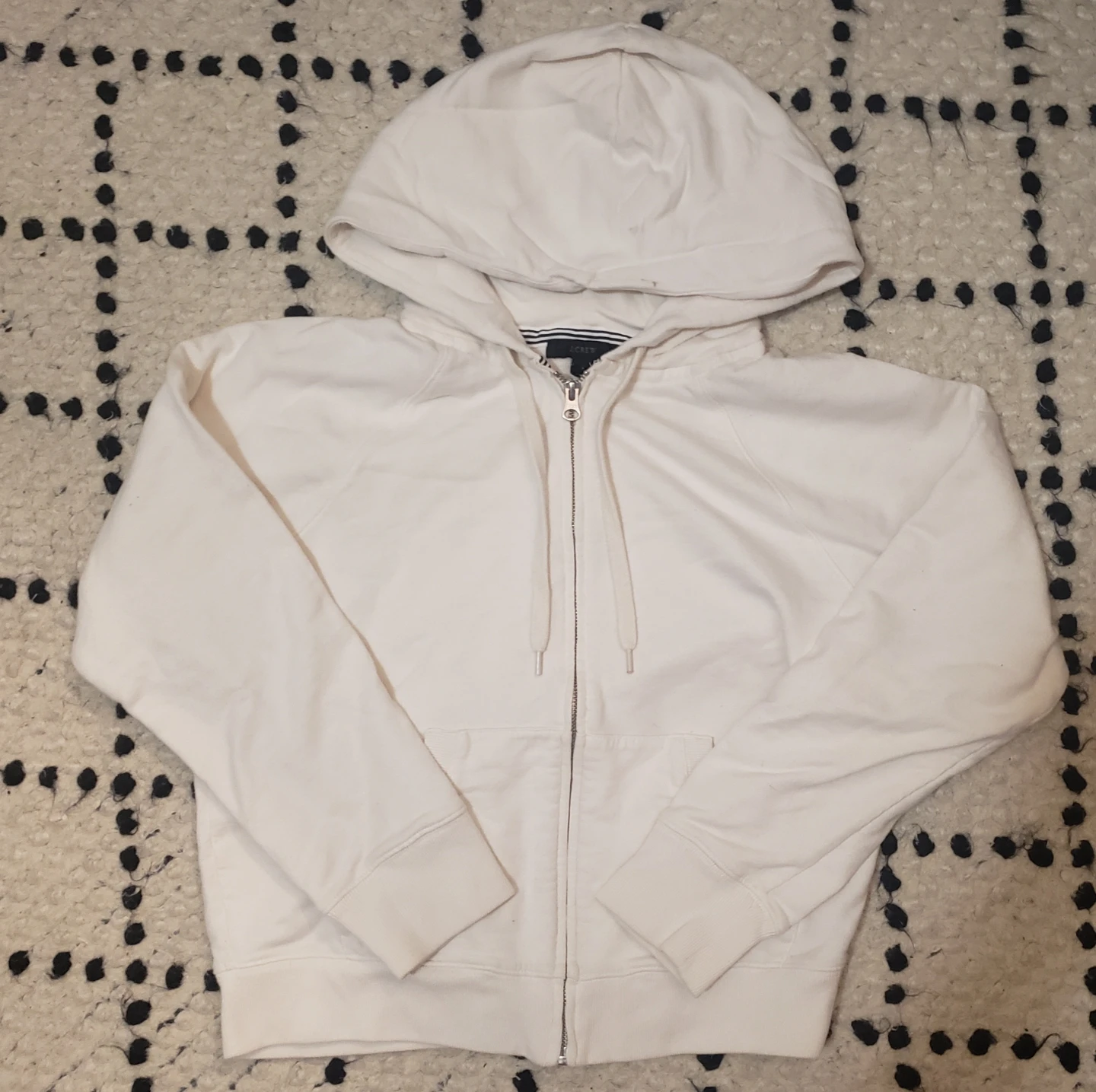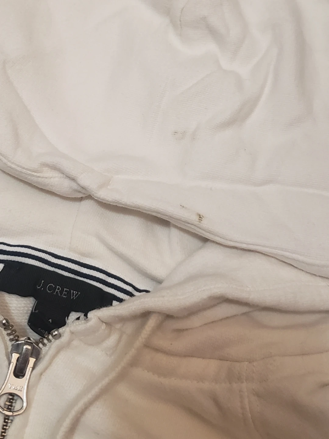 Selling a J.Crew white full zip hoodie in size medium. It has 2 stains but other then that its in good condition.