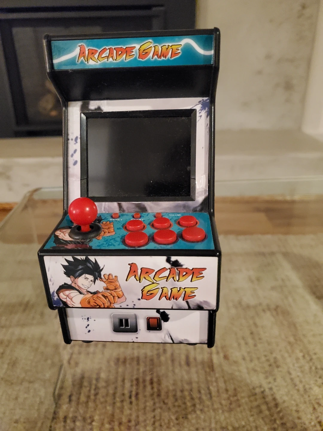 Selling a mini arcade game with 156 games built in! It's in great shape and ready for some fun. Perfect for a desk or a small space!