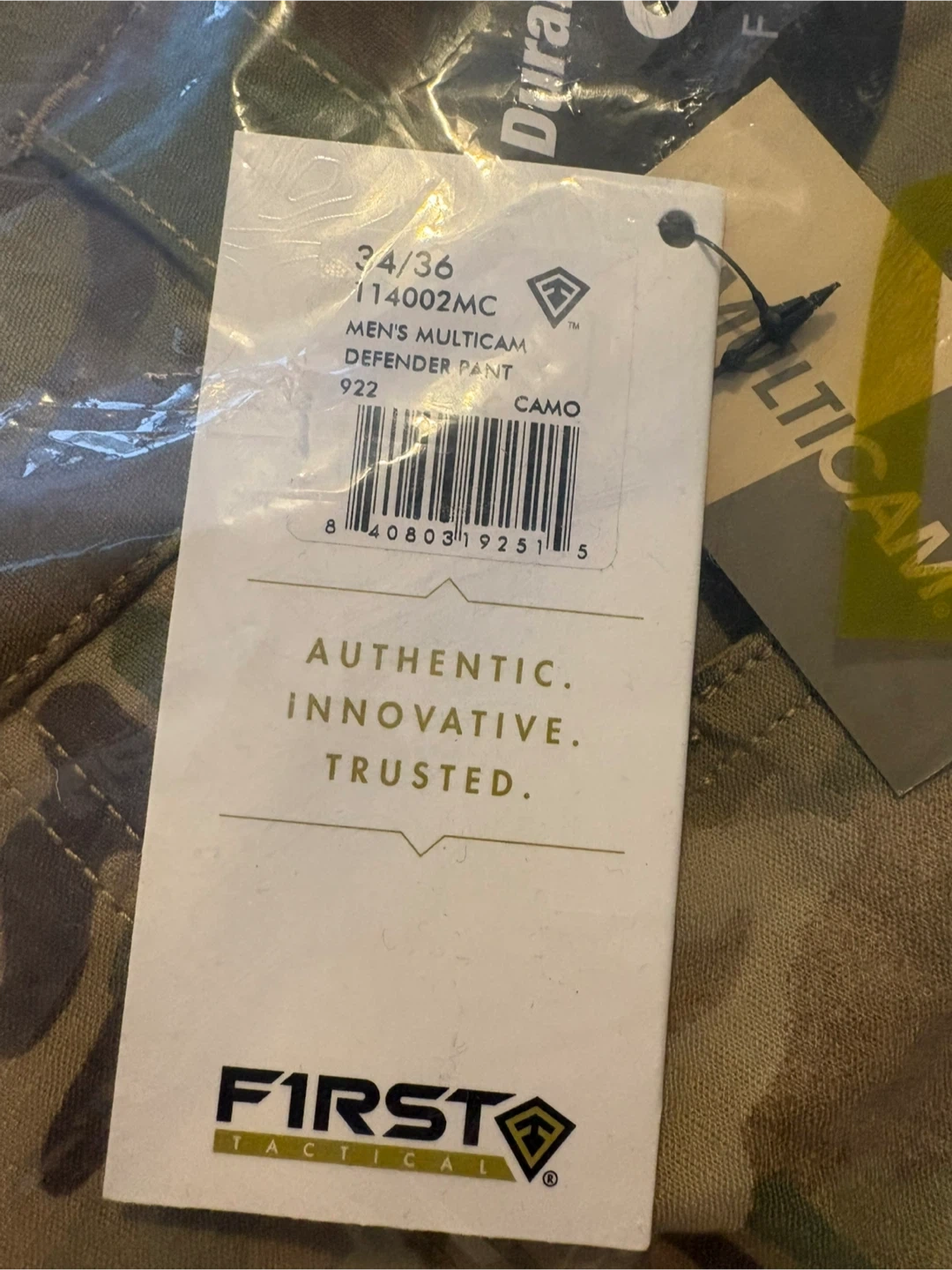These are brand new First Tactical Defender pants in size 34x36. They feature a multicam pattern and are made with durable Cordura fabric. Authentic, innovative, and trusted!