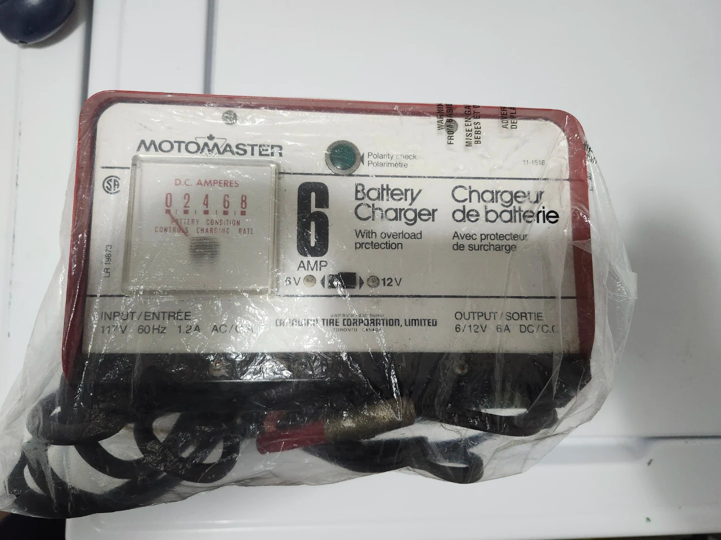 Selling a MotoMaster 6 AMP Battery Charger. It's in good condition and ready to use. It has overload protection and is suitable for both 6V and 12V batteries. Perfect for keeping your car battery in top shape!