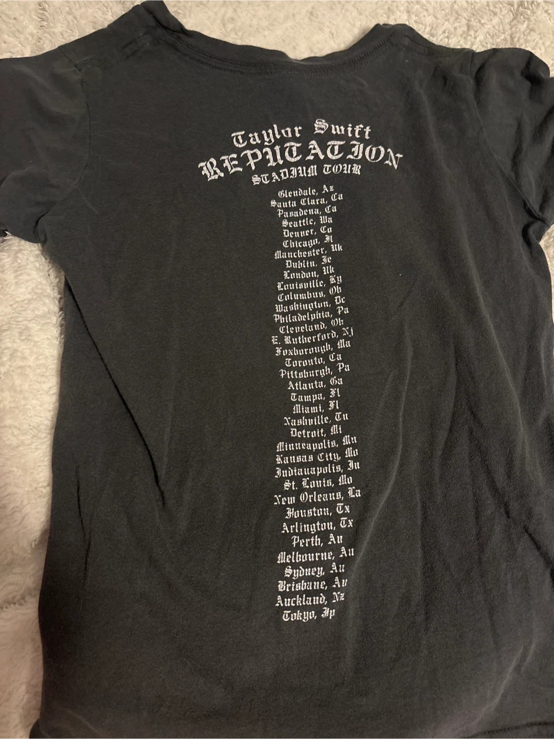 Selling a Taylor Swift Reputation Stadium Tour T-shirt! It's in good condition and features a design from the tour. Perfect for any Swiftie looking to add to their collection