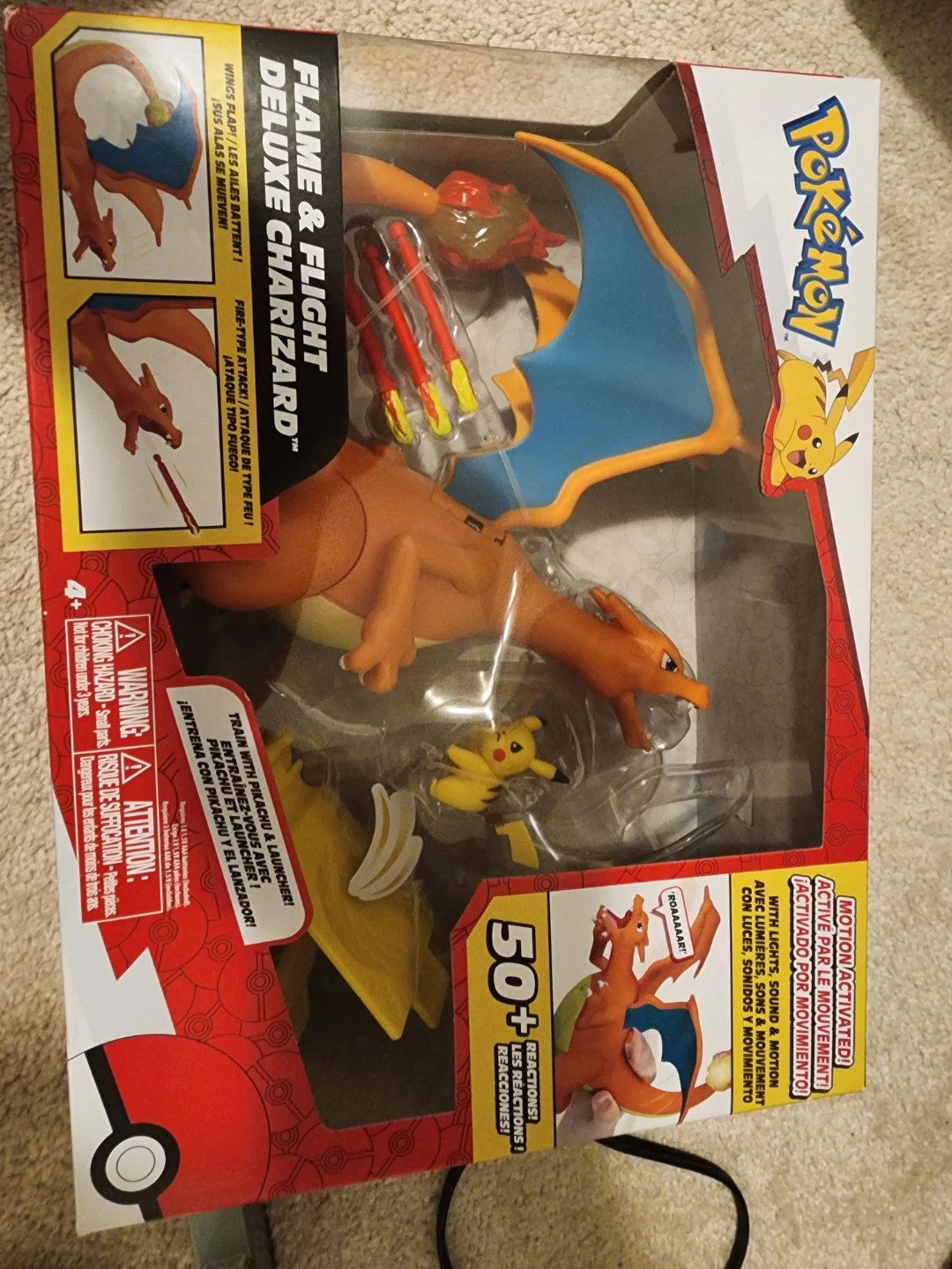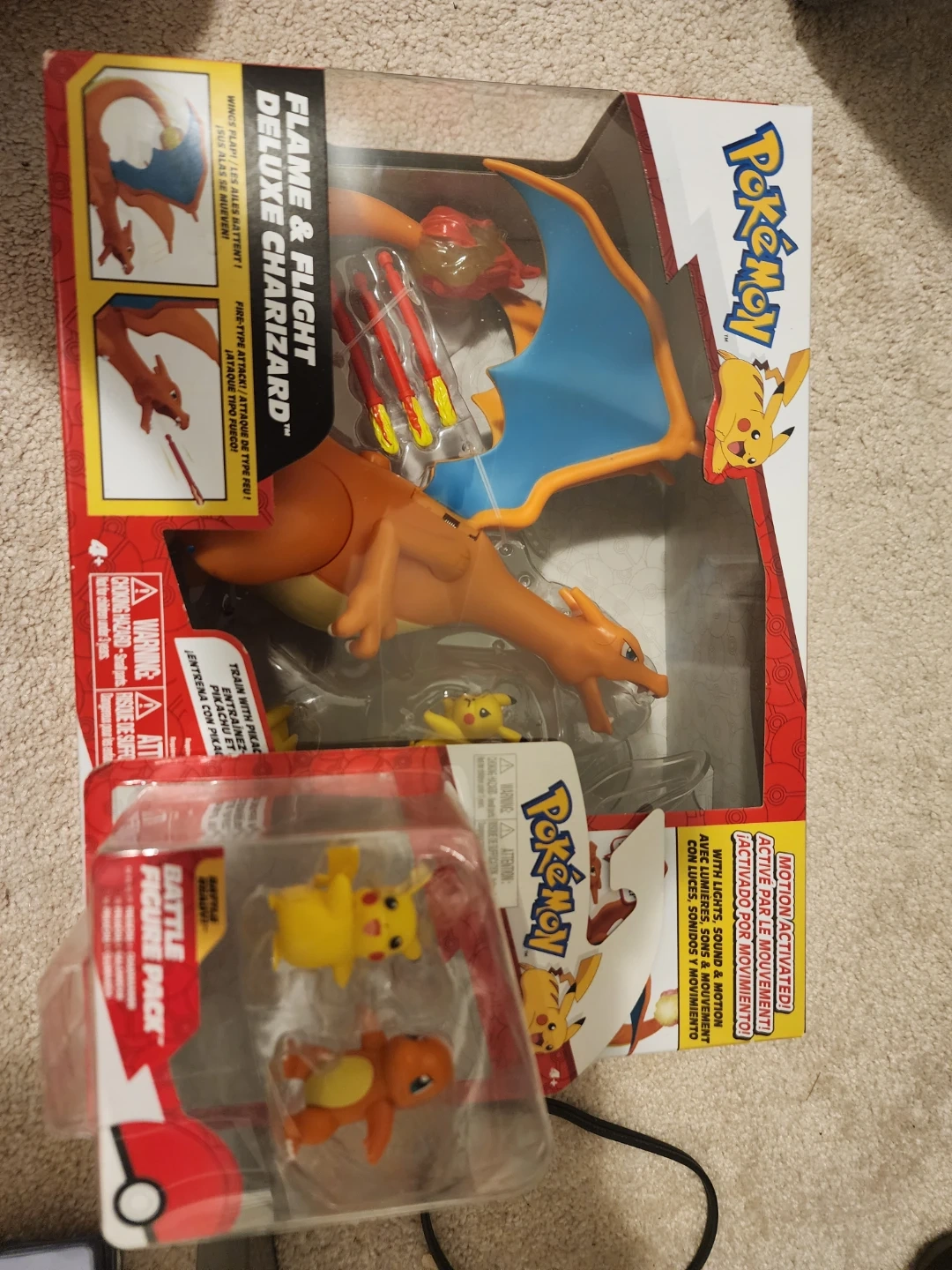 Selling a Pokémon Flame & Flight Deluxe Charizard and a Battle Figure Pack! Both are in great condition and ready for a new home. The Charizard features motion-activated lights and sounds. The Battle Figure Pack includes Pikachu and Charmander figures