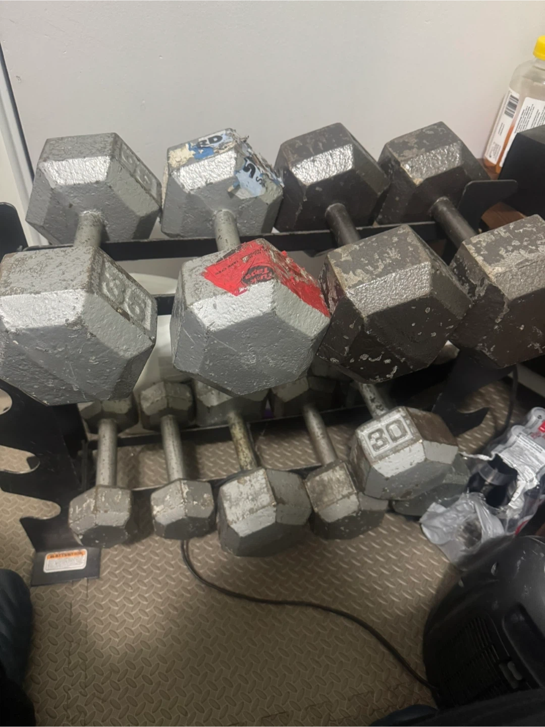 Selling a set of used hex dumbbells,